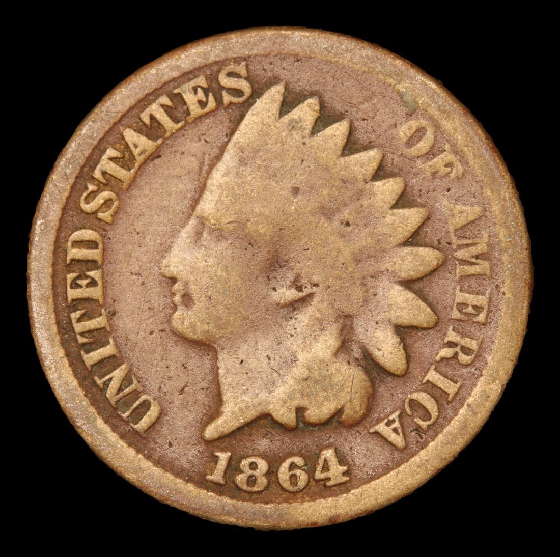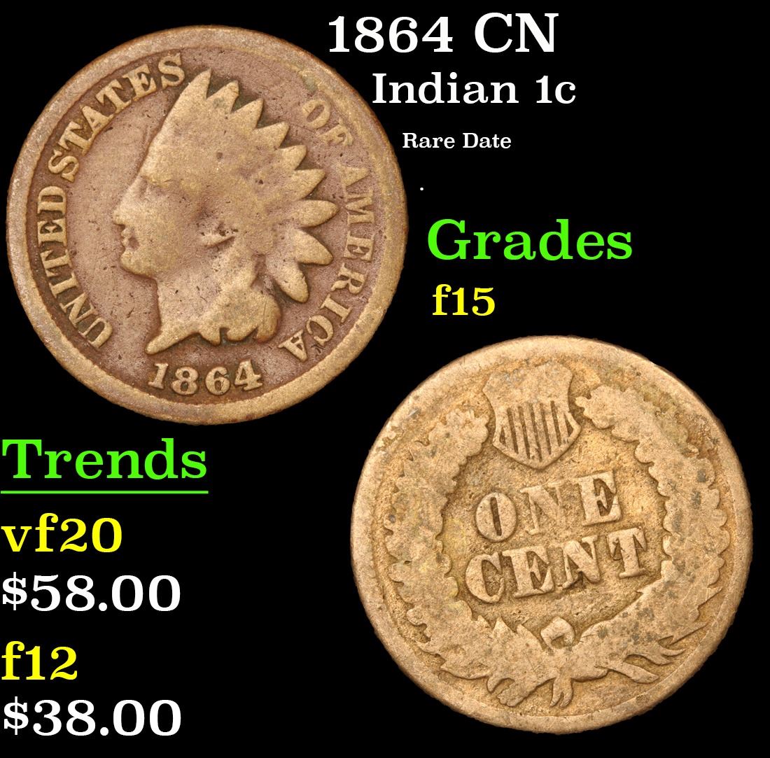 1864 CN Rare Date . Indian Cent 1c Grades f+.