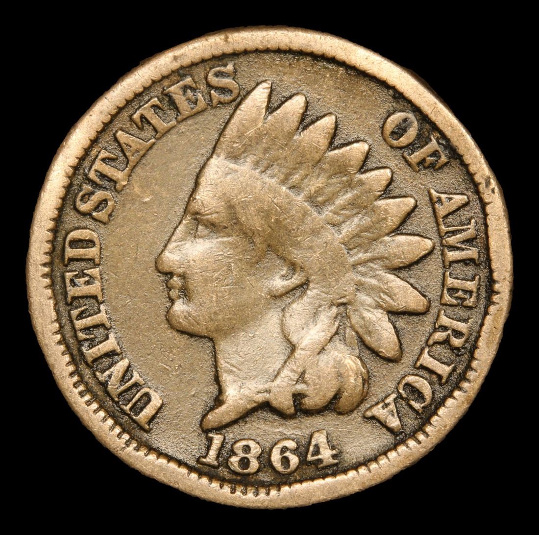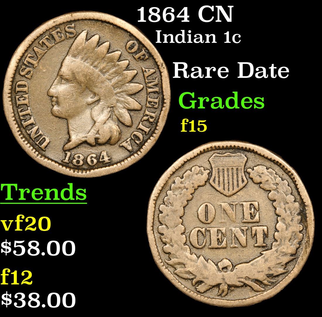 1864 CN Rare Date . Indian Cent 1c Grades f+.