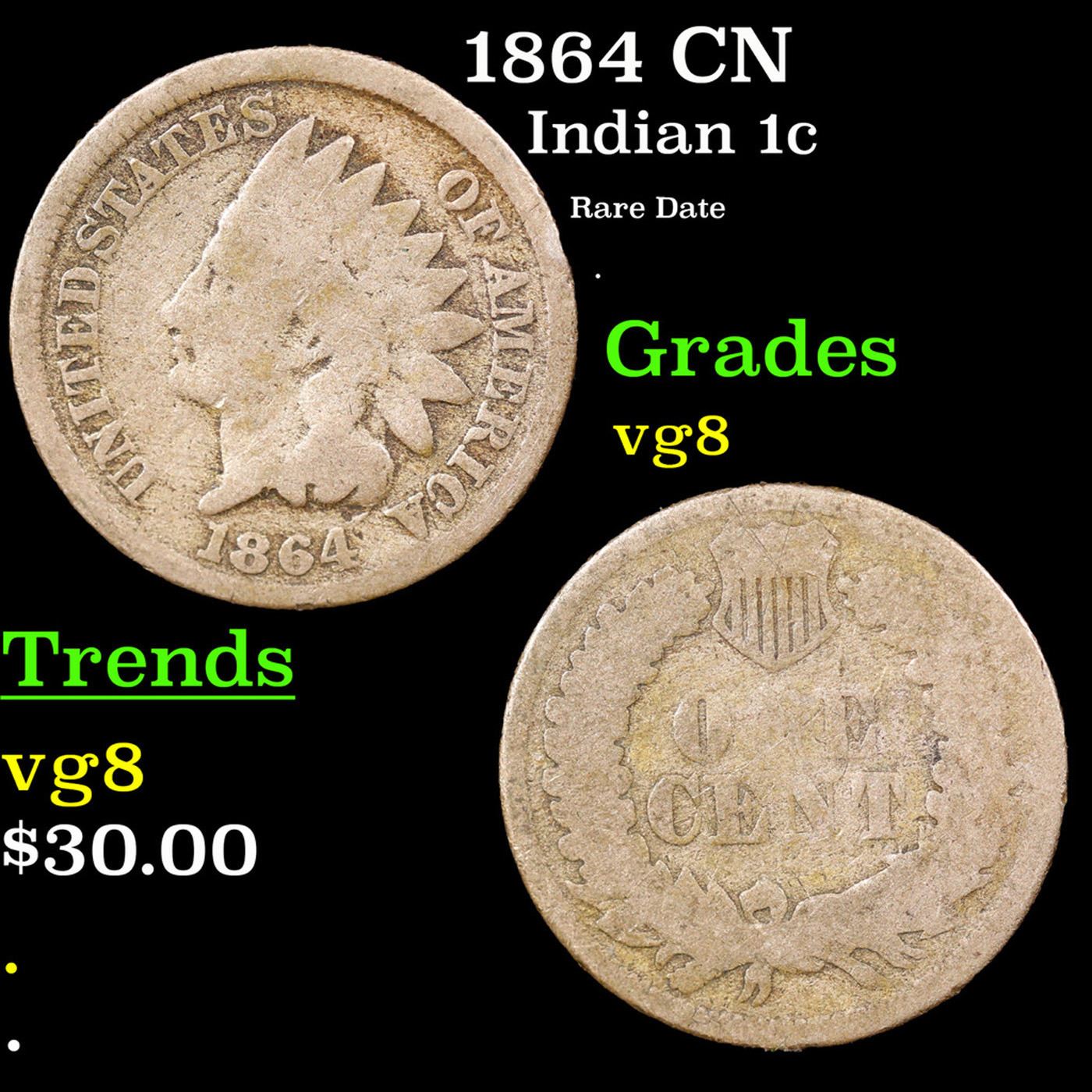 1864 CN Indian Cent 1c Grades vg, very good.