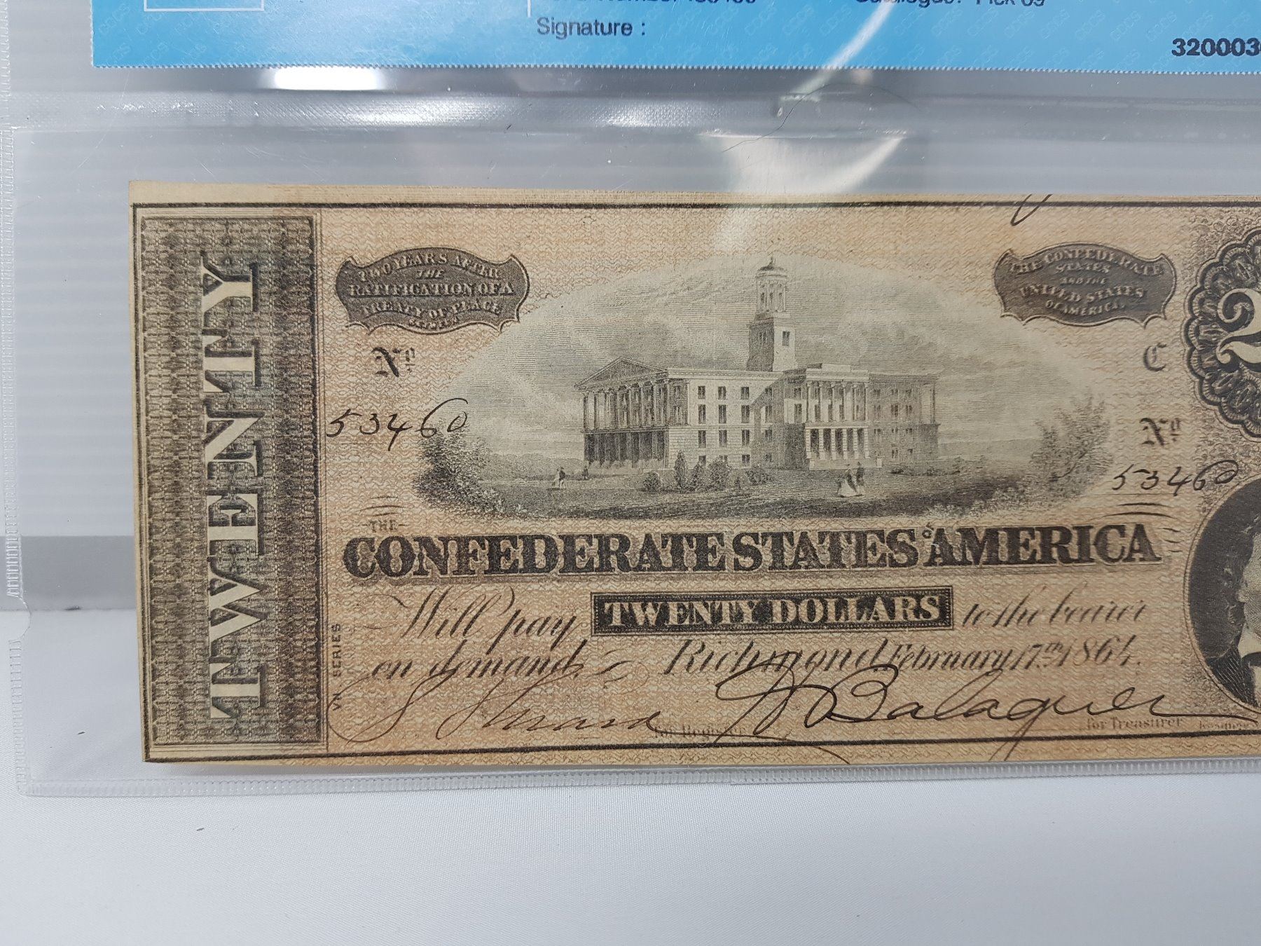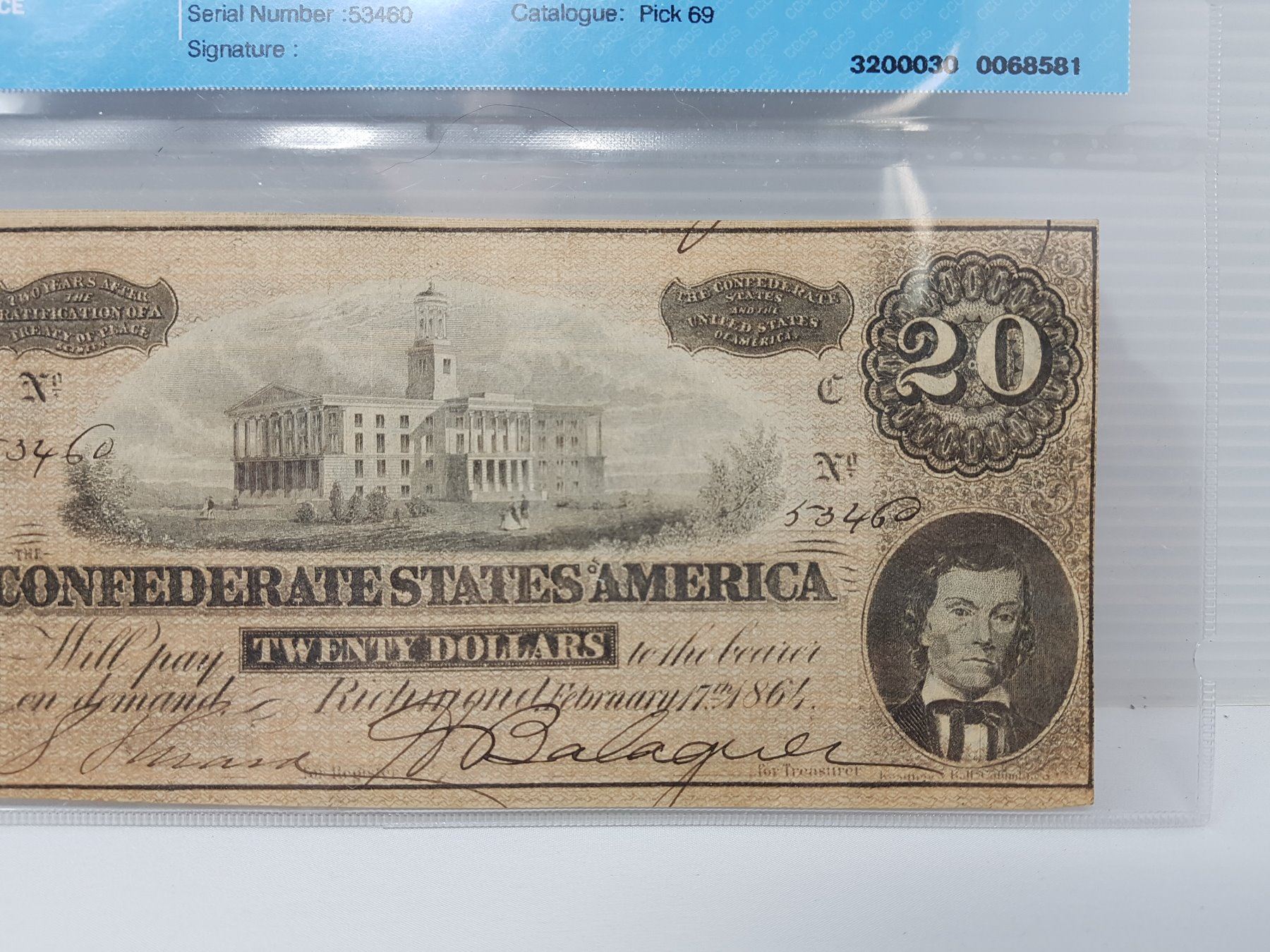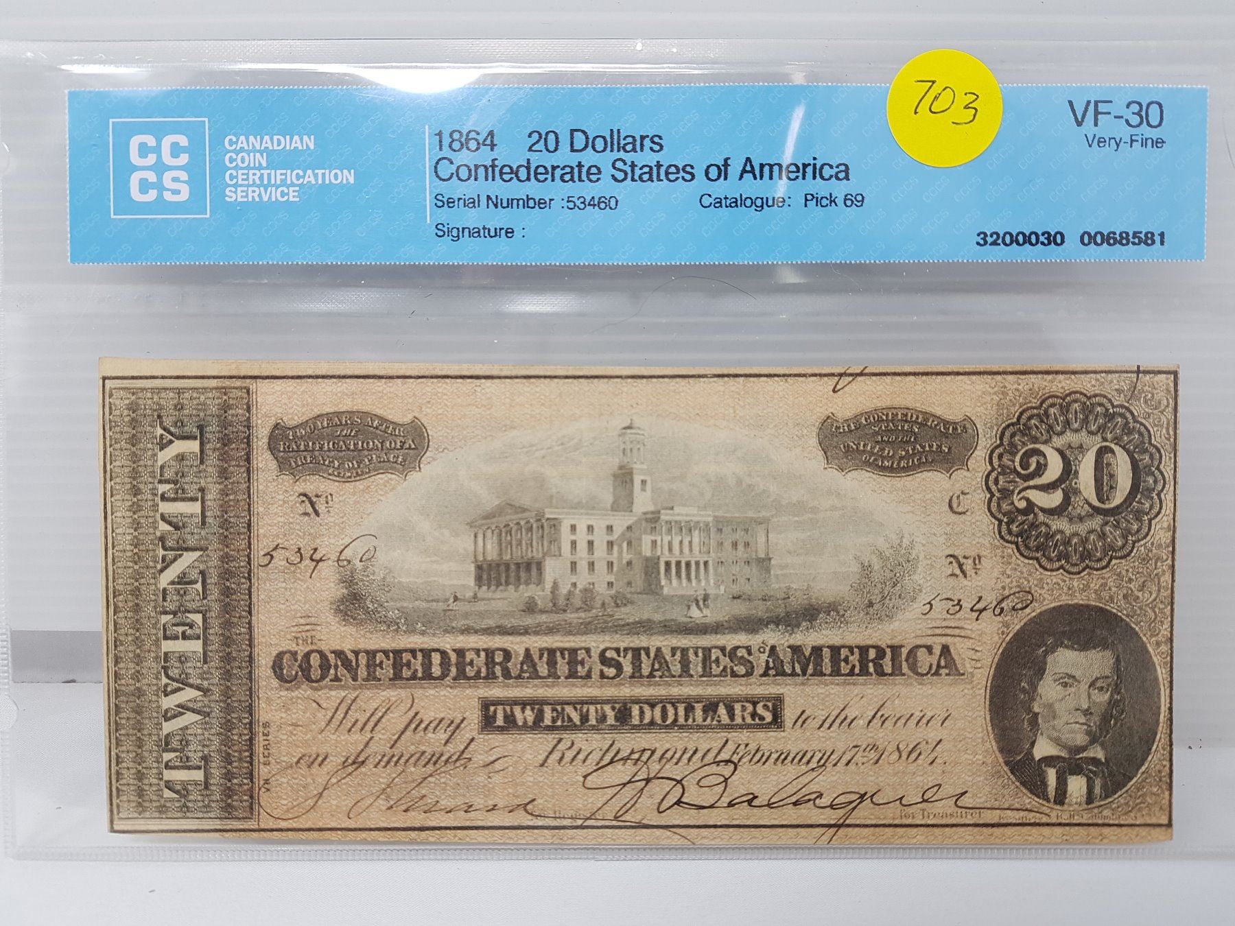 1864 CONFEDERATE BANK NOTE VF-30 USA $20.00