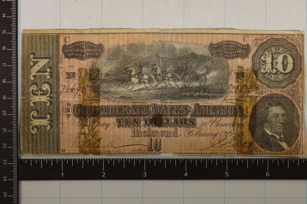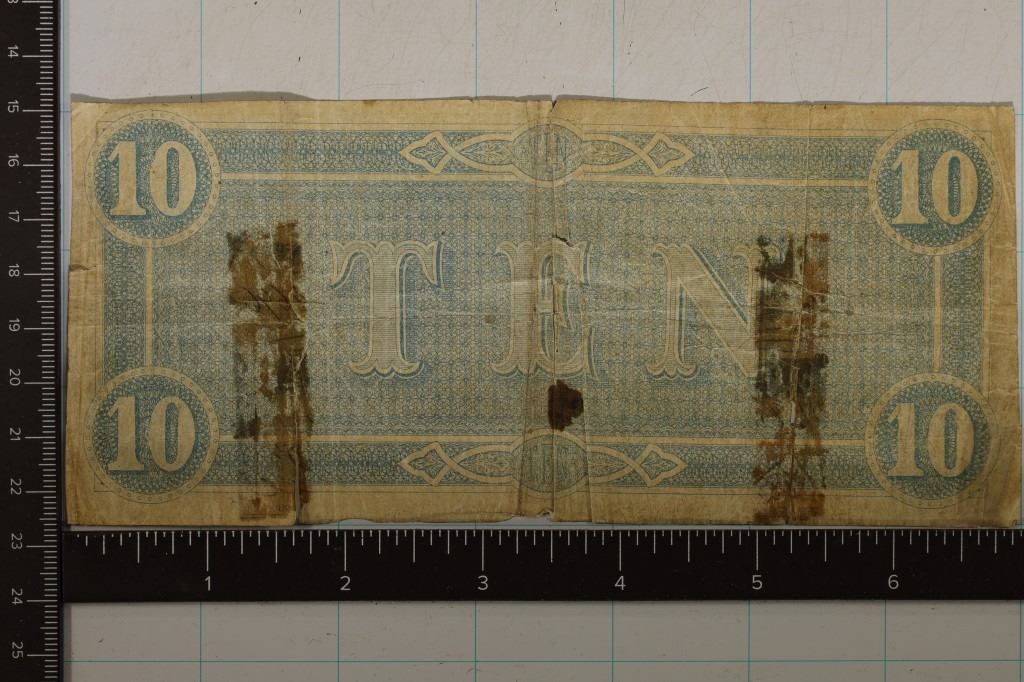 BILL. HAND SIGNED AND NUMBERED. RIPS ARE PRESENT ALONG WITH OLD TAPE MARKS AND SMALL HOLES AS SHOWN
