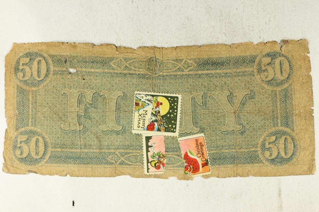 HAND SIGNED AND NUMBERED WITH 2 VINTAGE CHRISTMAS STAMPS ON BACK
