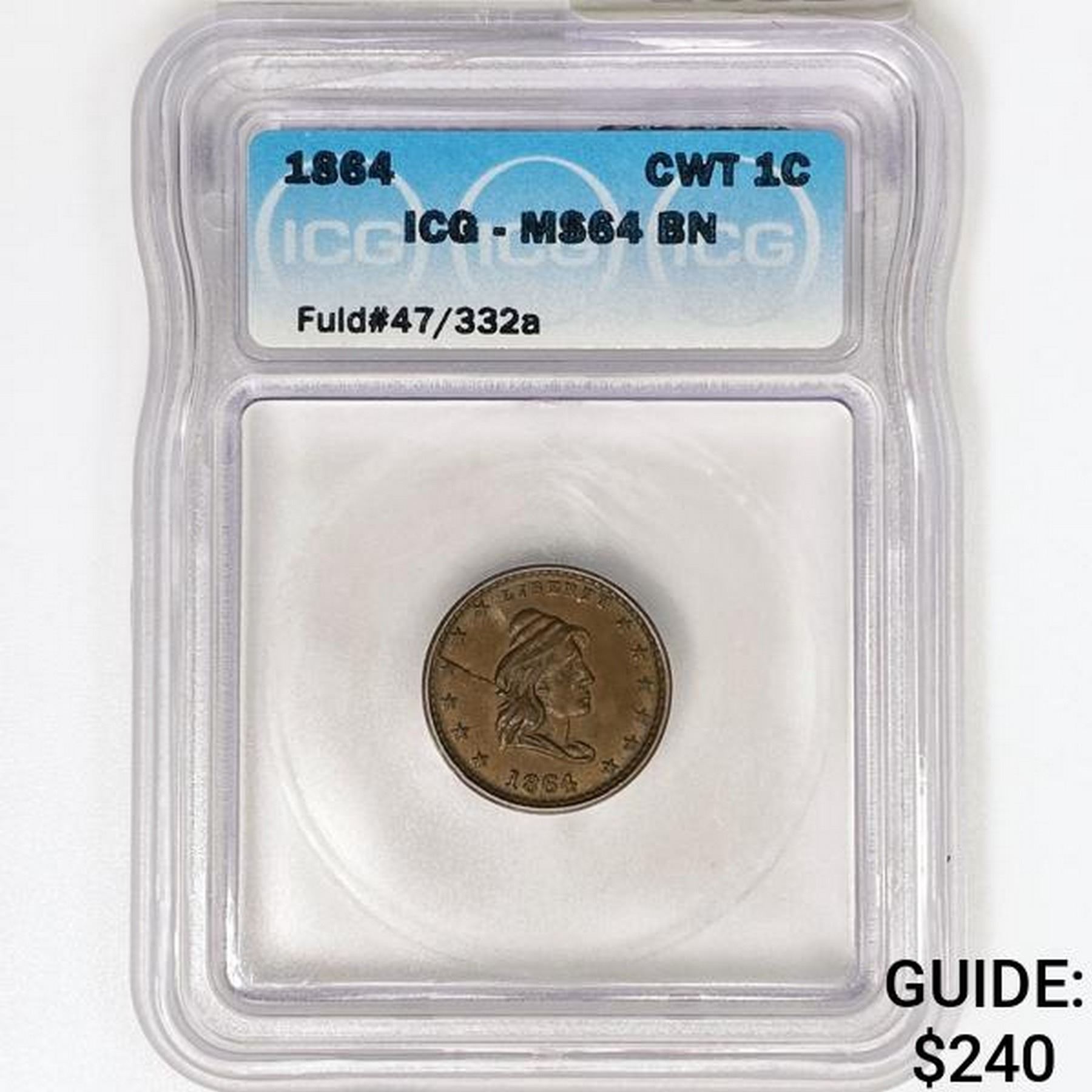 1864 CWT Cent Fuld#47/332a ICG MS64 BN