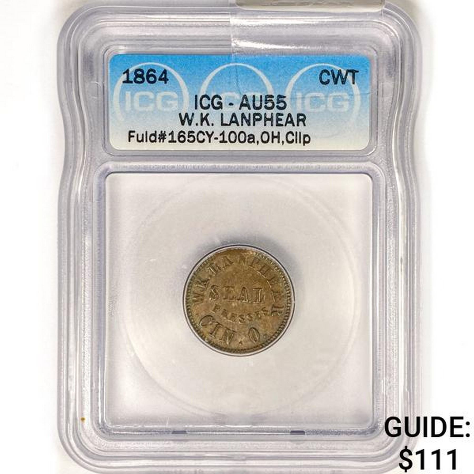 1864 CWT Fuld#165CY-100a,OH,Clip ICG AU55