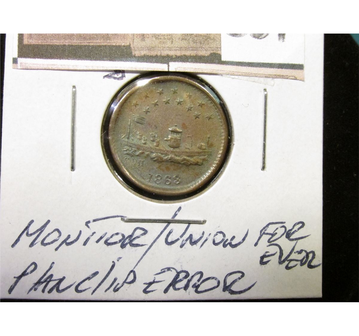 1864 CWT “Monitor/Union for Ever” Scarce w/Minor Plan Clip Error