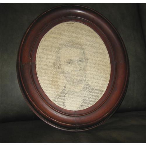 or as give-aways at the meeting's conclusion. <P>Pratt chose to recreate the words of the text in the shape of an oval, a seemingly impossible feat of word placement and skill, to have it work out so perfectly. Not only that, but Pratt was able to make some of the penstrokes slightly darker, so that the bust of Lincoln jumps out of the text!! Starting with the word,"Whereas" at the apex, Pratt created a masterpiece, by accomplishing this extraordinary calligraphic feat within the confinds of the oval shape he had chosen for himself.<P>Batches of