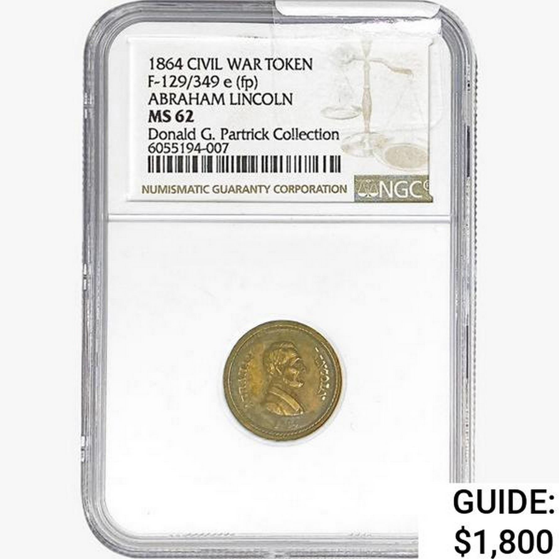 1864 Civ. W. Token F-129/349e (fp) NGC MS62 Lincoln