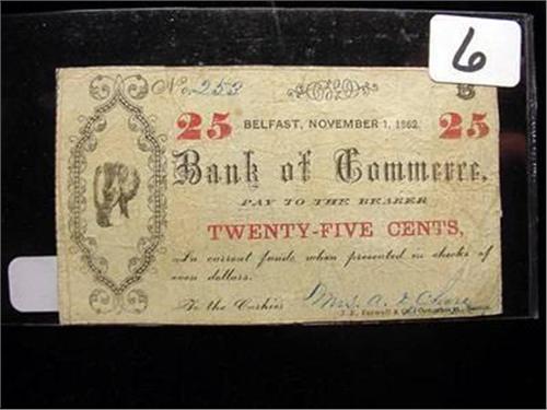 1864 Civil War Era 25 Cent Script "Bank of Commerce-Belfast" VF