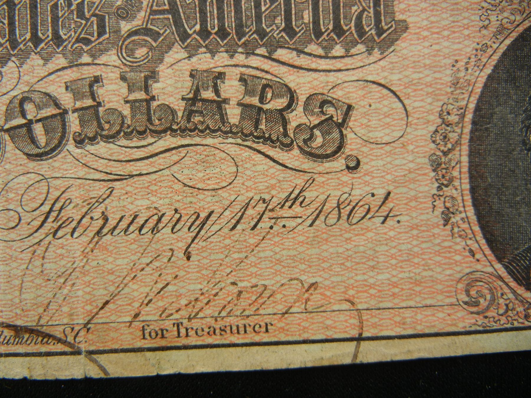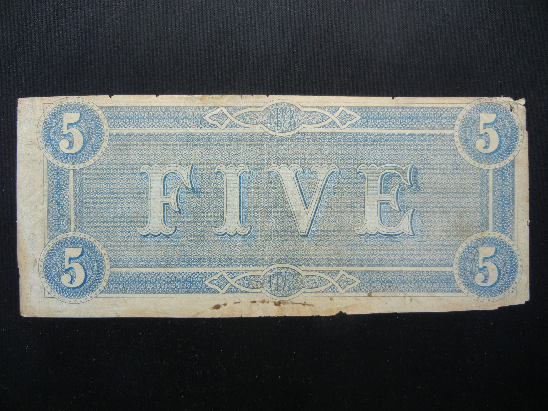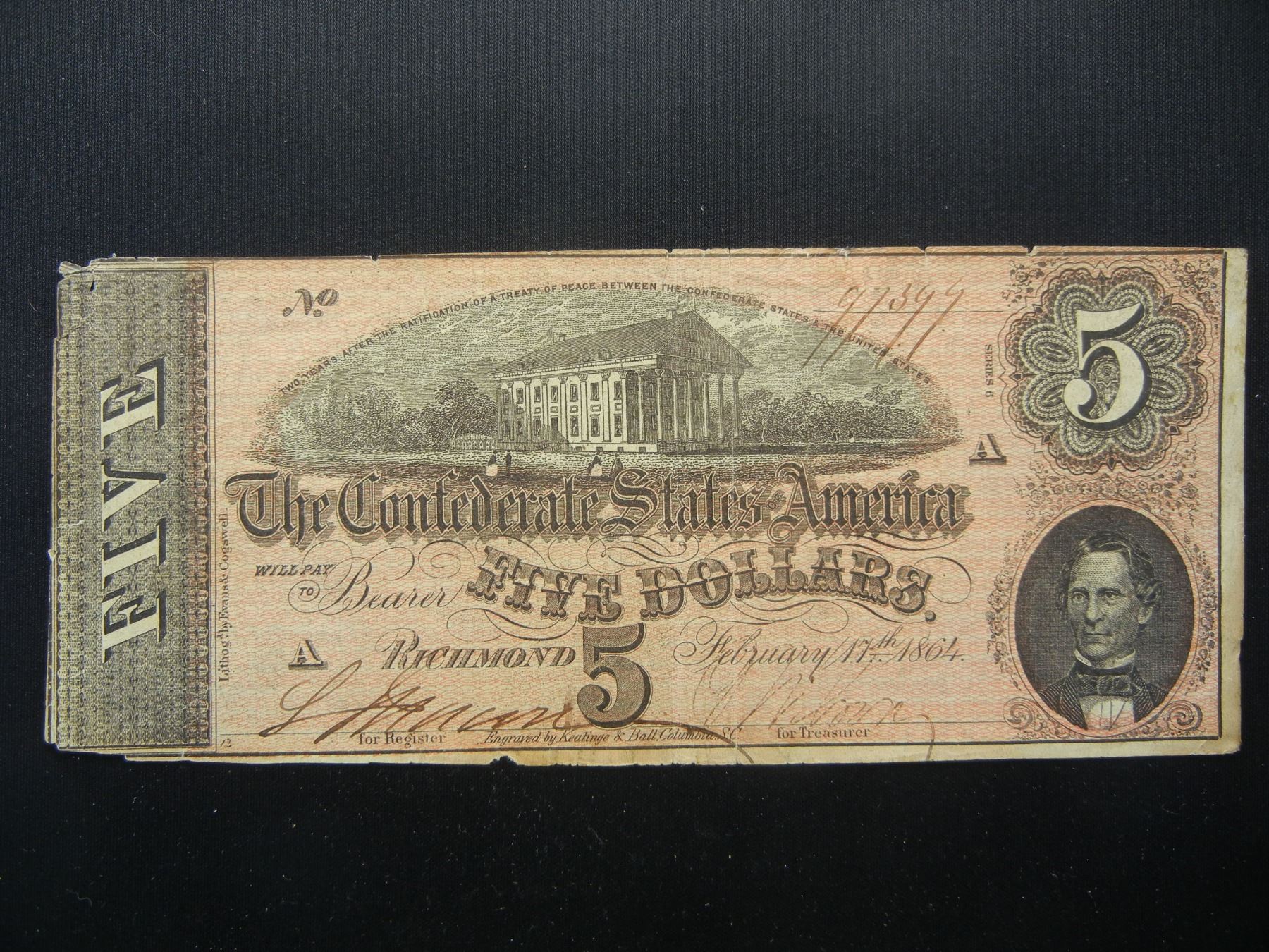 1864 Confederate States $5. Richmond Capitol. XF condition