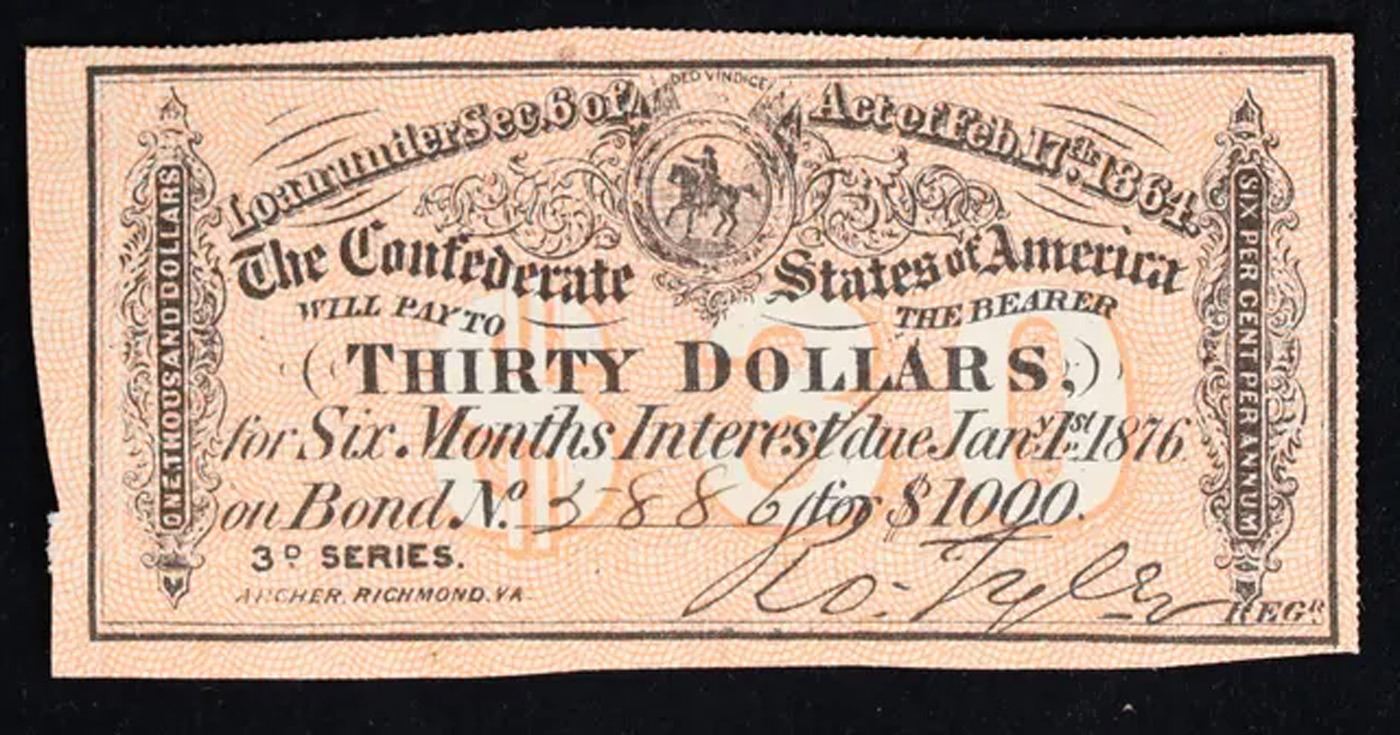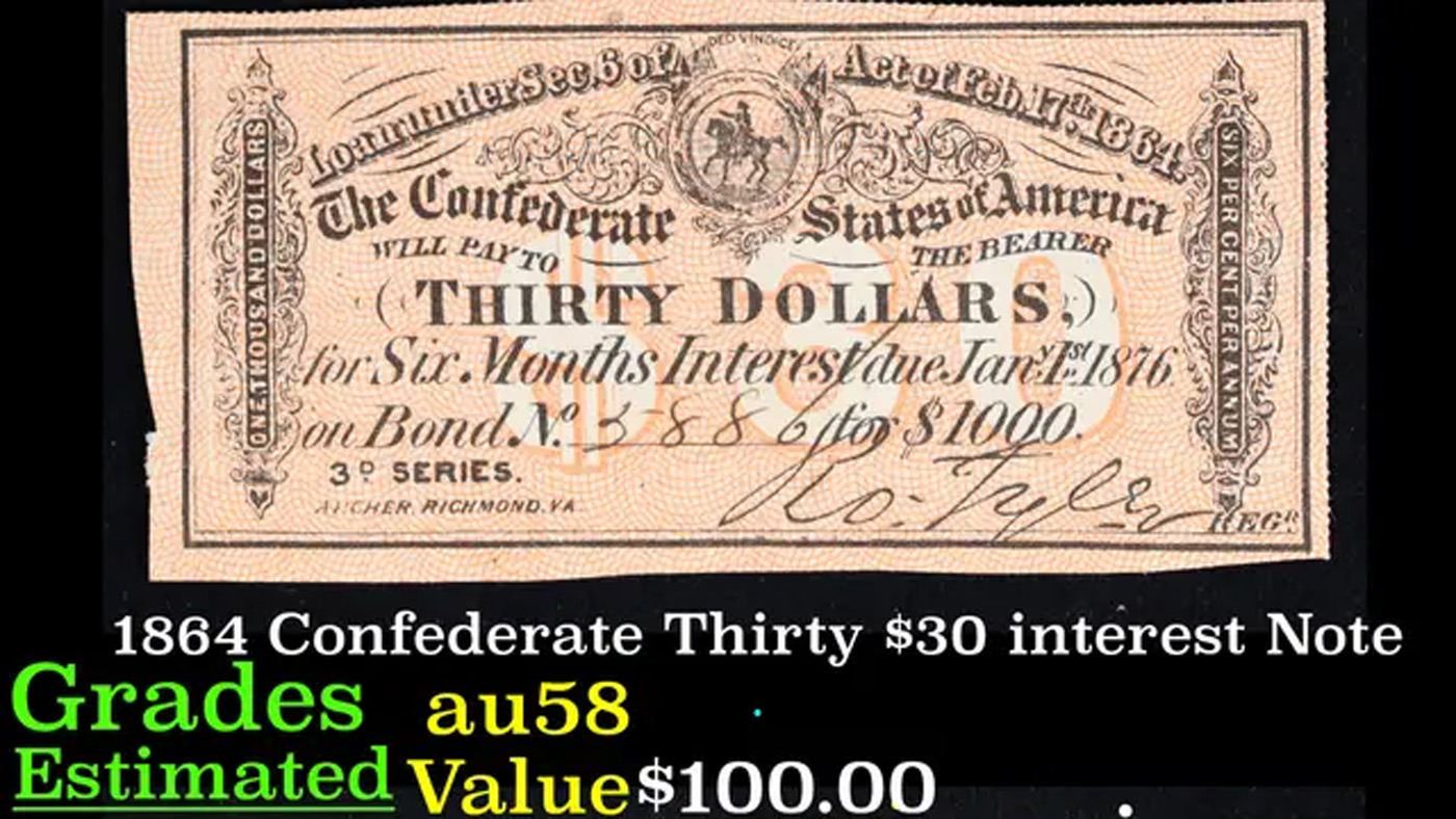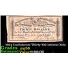 1864 Confederate Thirty $30 interest Note Grades Choice AU/BU Slider.