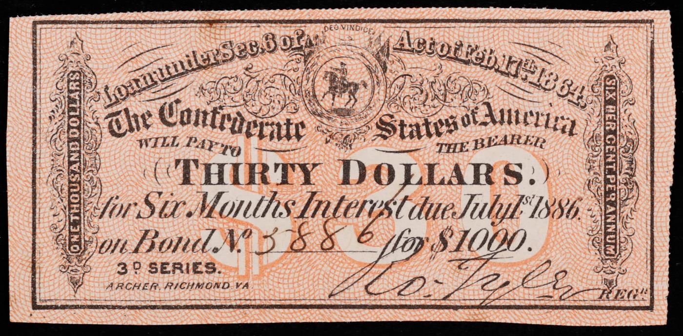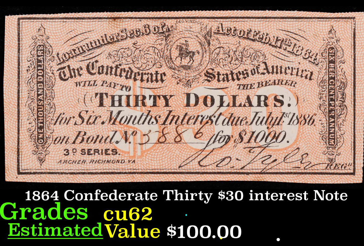1864 Confederate Thirty $30 interest Note Grades Select CU.