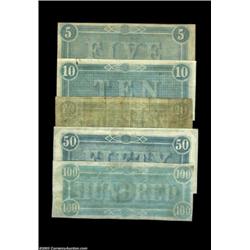 1864 Confederates. A nice group of late CSA issues, including a contemporary counterfeit T65 $100, and one each of genuine notes T66 $50, T67 $20, T68 $10, and T69 $5. Grades range from Very Fine to Crisp Uncirculated. 5 notes Important notice: Heritage usually auctions material at the rate of 200-250 lots per hour. On some occasions eBay Live bid software or the Internet may not be able to keep up with the pace of the auction. We recommend placing a realistic absentee bid now as insurance to avoid disappointment. Occasionally the auctioneer may eliminate or reject an eBay Live bid, and the auctioneer may also reopen a lot after the close of the eBay live bidding (usually because we missed an audience bid), and may reject your bid even if it shows you as the winning bidder. By bidding via eBay Live, you agree that Heritage may award the lot to another bidder at its sole discretion under the circumstances described above or any other reasonable circumstances. Also please note that all Heritage lots purchased through eBay Live carry a 20% Buyer's Premium. Please make sure you read the Terms and Conditions before you bid.