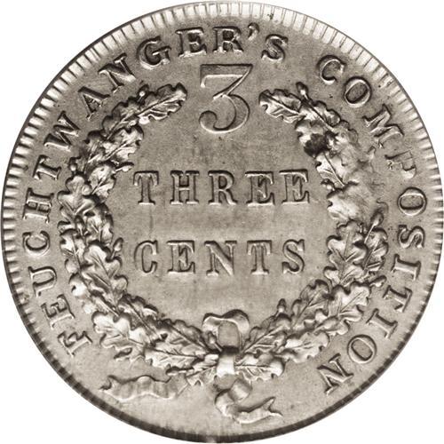 1864 Feuchtwanger Three Cent Token MS60 PCGS. HT-267, R