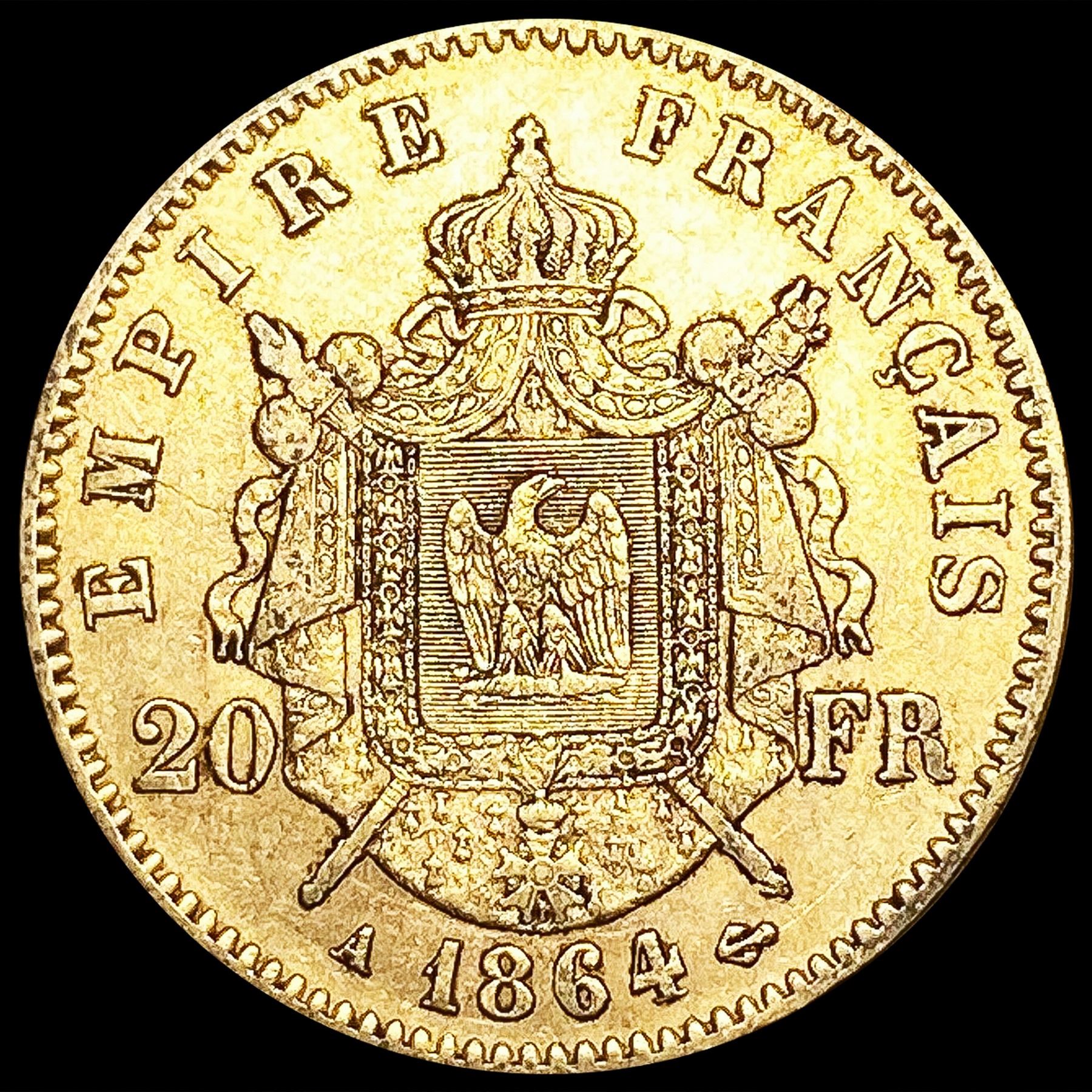 1864 France .1867oz Gold 20 Francs CLOSELY UNCIRCU