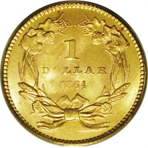 1864 G$1 MS64 PCGS. A rare, low mintage issue with a b 1864[G$1] MS64 PCGS.
