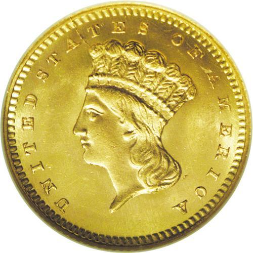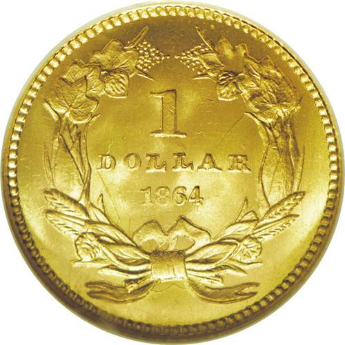 1864 G$1 MS67 NGC. A mere 5,900 business strikes were 1864[G$1] MS67 NGC.