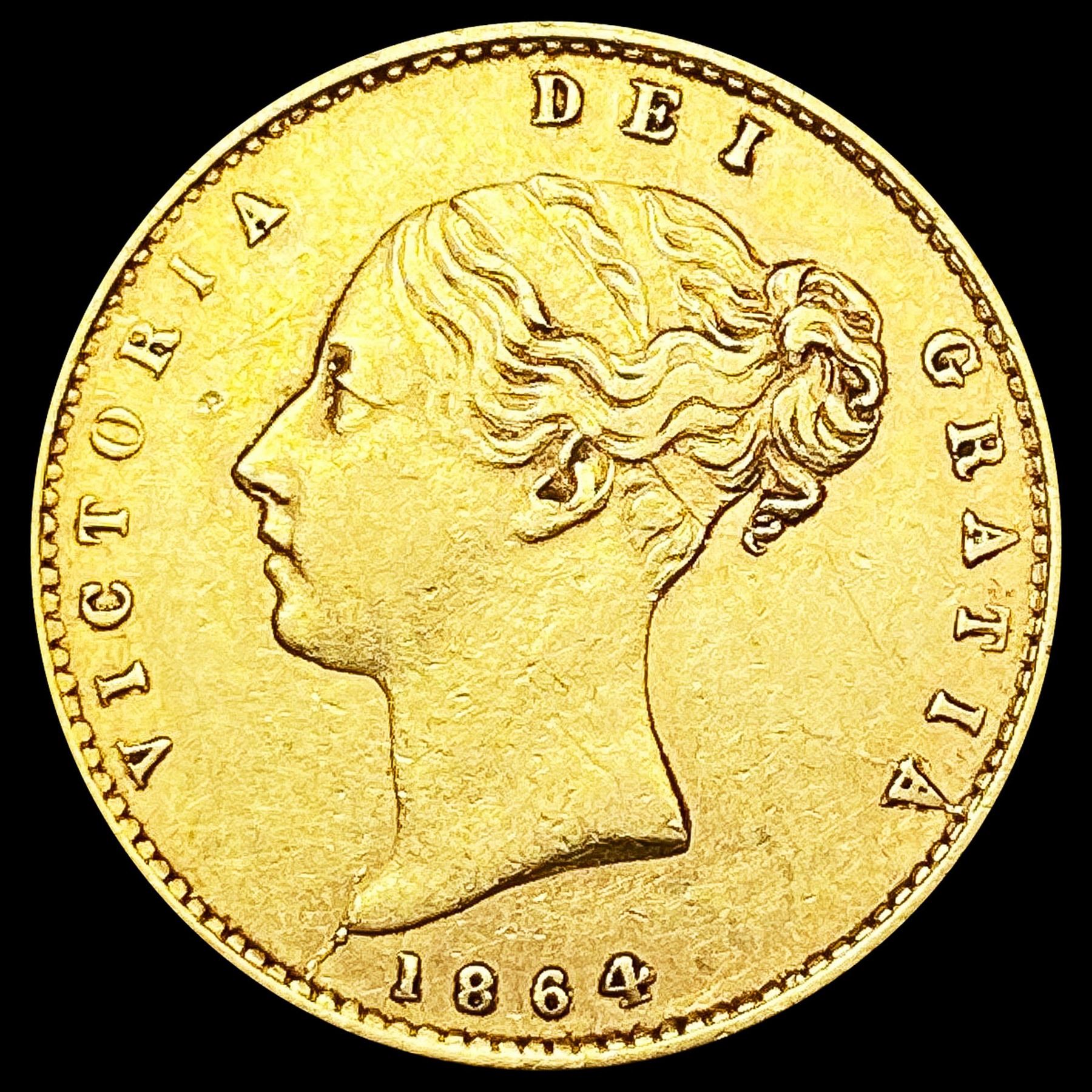 1864 G. Britain .1178oz Gold 1/2 Sovereign CLOSELY