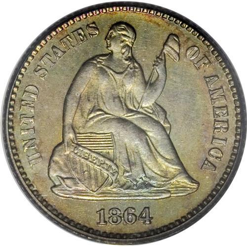 1864 H10C PR66 PCGS. Glorious apple-green, gold, and r