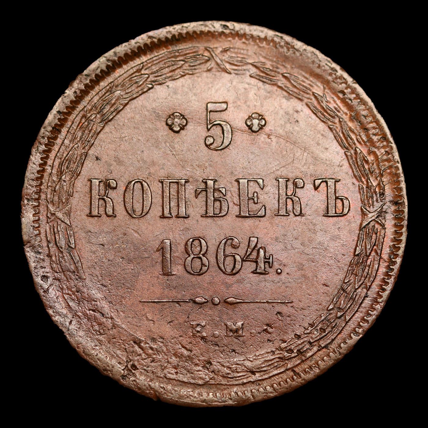 1864 Imperial Russia 5 Kopeks Km: 6A Grades Select Unc.