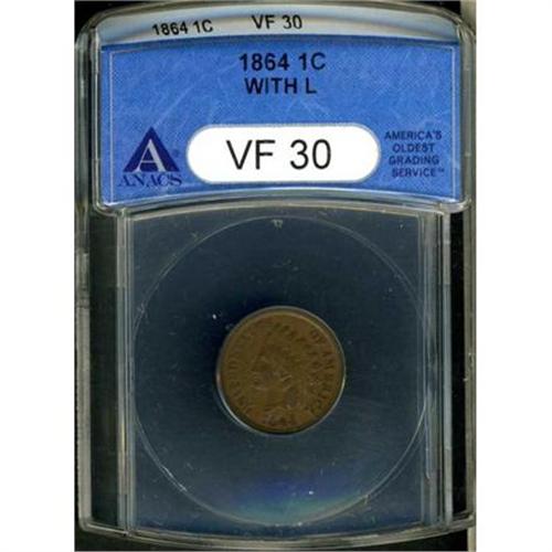 1864 Indian Head 1C. Bronze, with L ANACS VF30