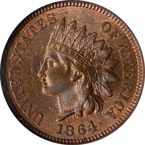1864 Indian Head 1C. Bronze, with L NGC MS66 RB