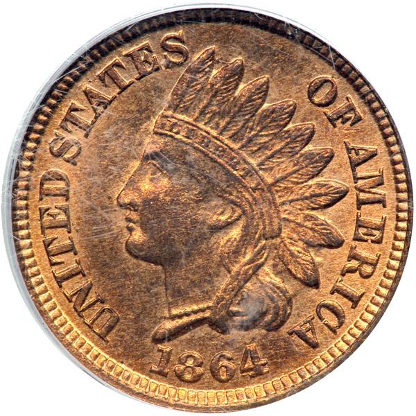 1864. Bronze. PCGS graded MS-65 Red & Brown CAC Approved. Loads of Mint Red. Pop 187; 24 in 66 RB (PCGS # 2077) .