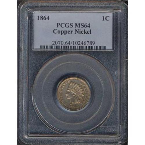 <b>1864 Indian Head Cent. Copper-nickel. PCGS graded MS64.</b> Bright with original copper-nickel luster whose tan and gray aspects appear favorably when choice and original <b>(PCGS # 2070)</b> <i>