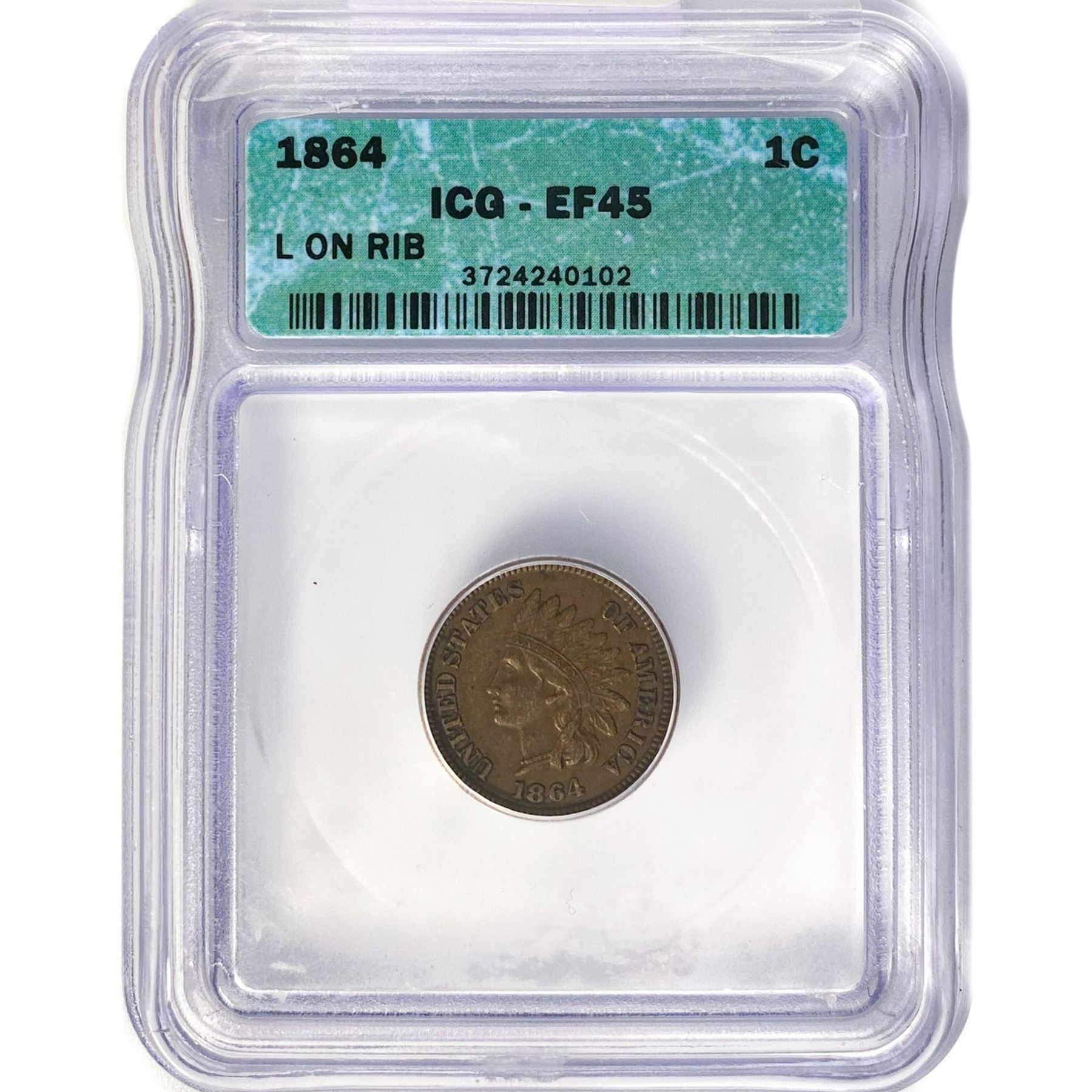 1864 Indian Head Cent ICG EF45 L on Ribbon