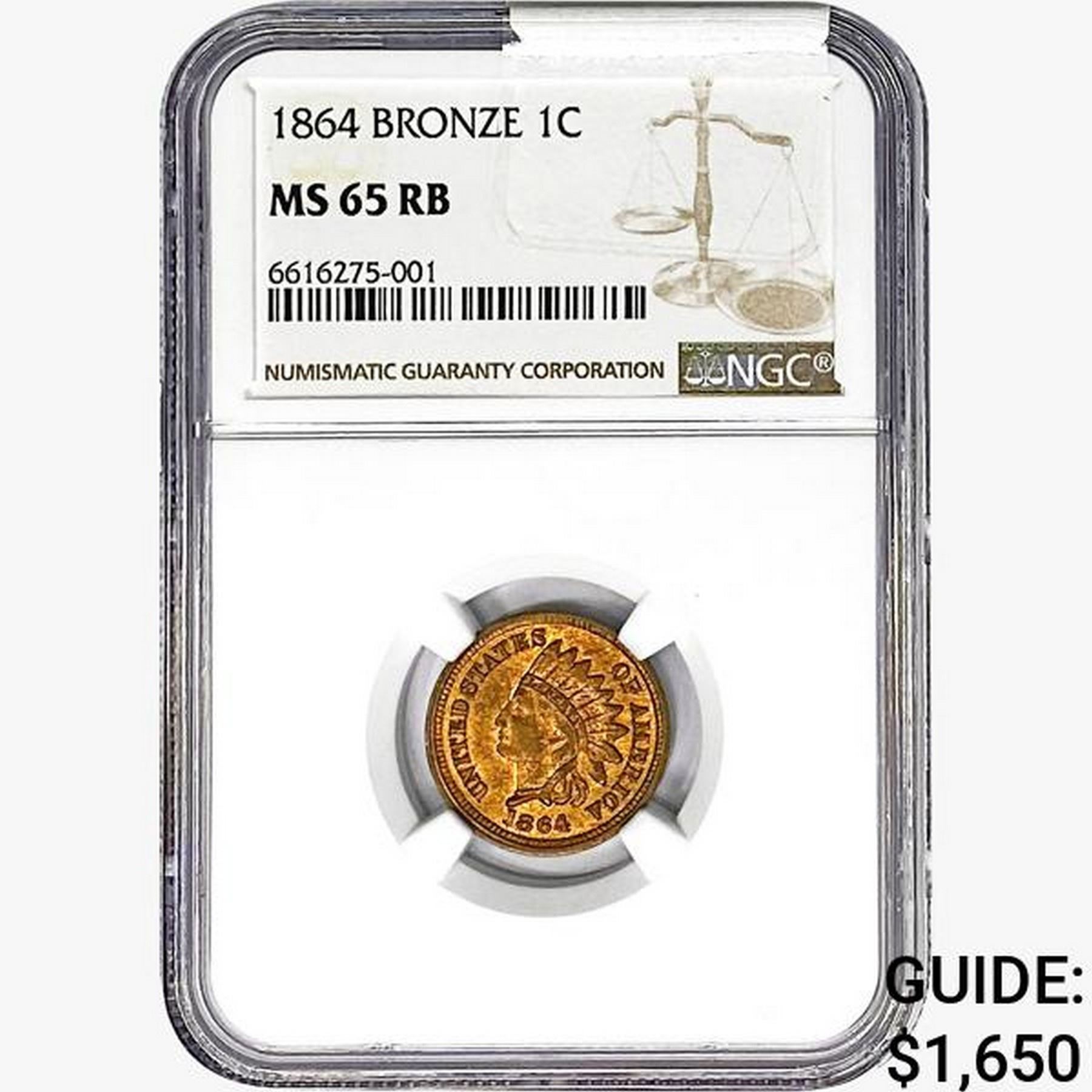1864 Indian Head Cent NGC MS65 Bronze RB