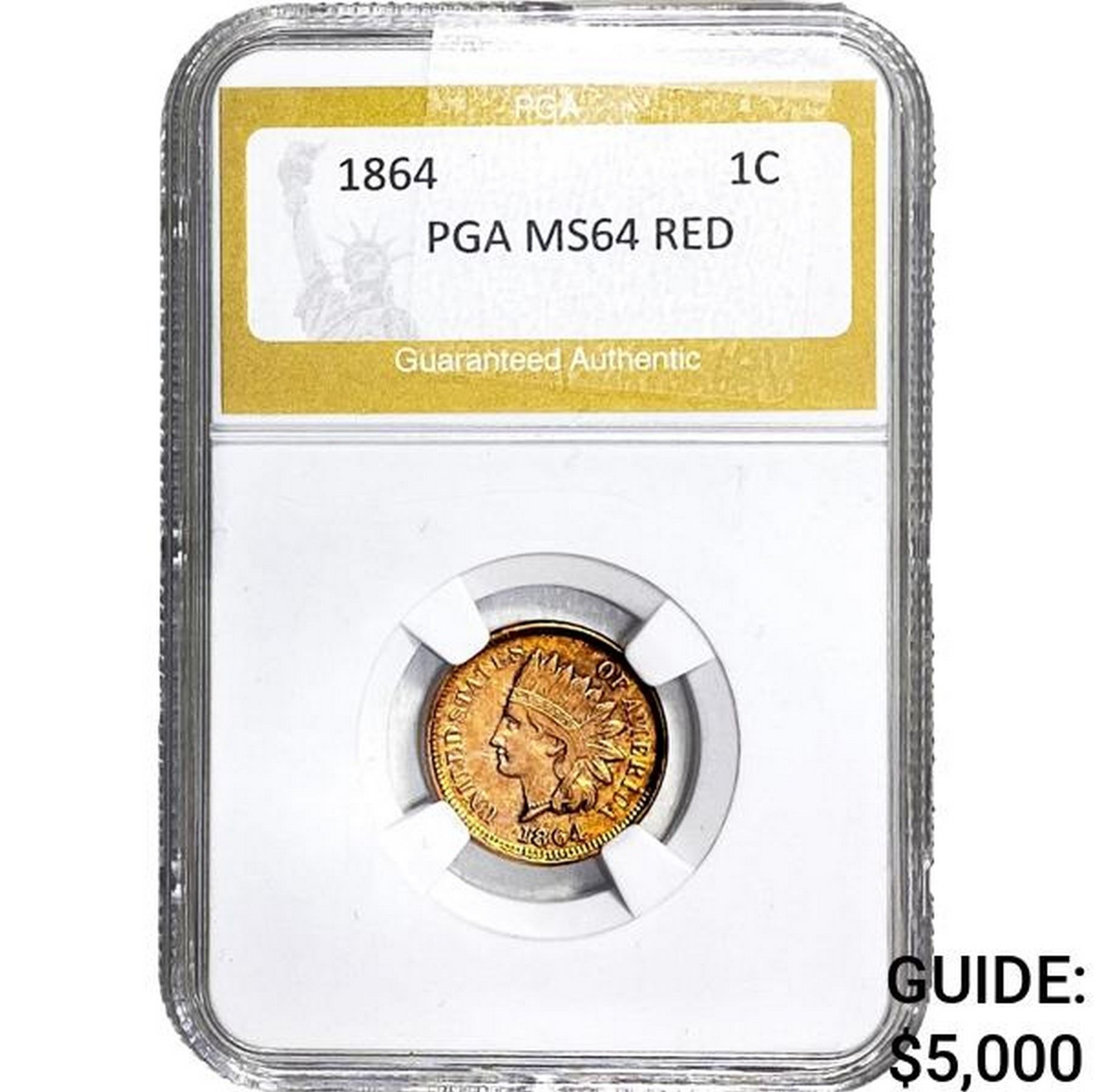 1864 Indian Head Cent PGA MS64 Red