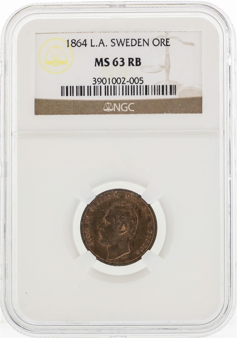 One 1864 L.A. Sweden ORE Coin NGC MS63RB. NGC Certified.