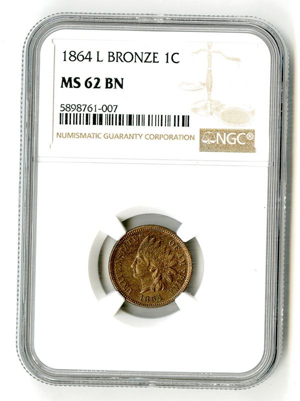 U.S., 1 Cent Indian. 1864 L.NGC Universal ID: 227M. Bronze. Attractive coin for the grade.