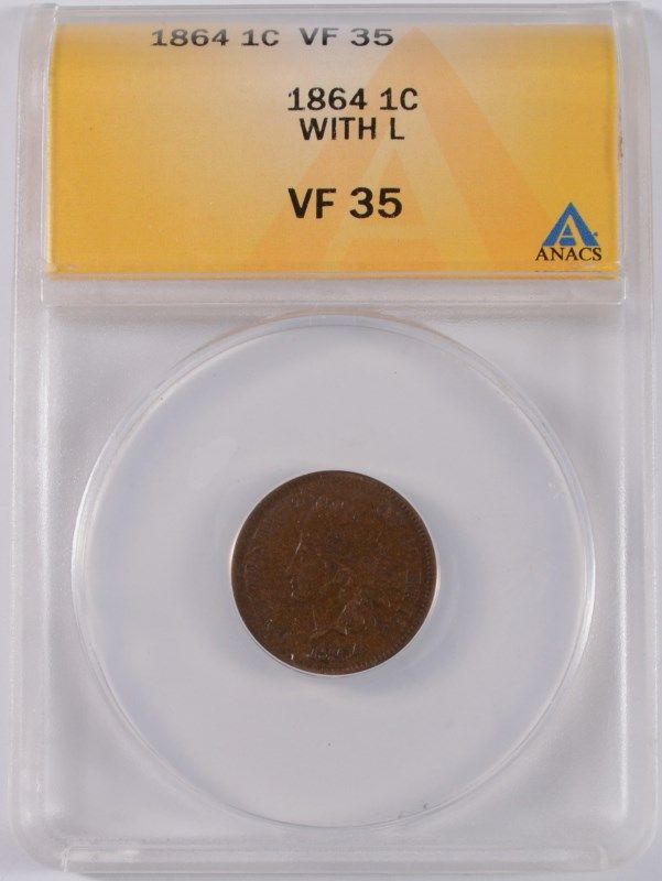 1864-L INDIAN HEAD CENT, ANACS VF-35,  KEY DATE!  IT'S REALLY XF-40!