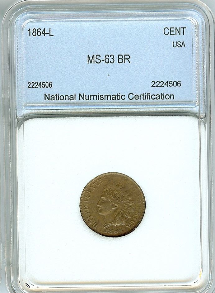 1864-L INDIAN HEAD CENT NNC MS-63 BROWN