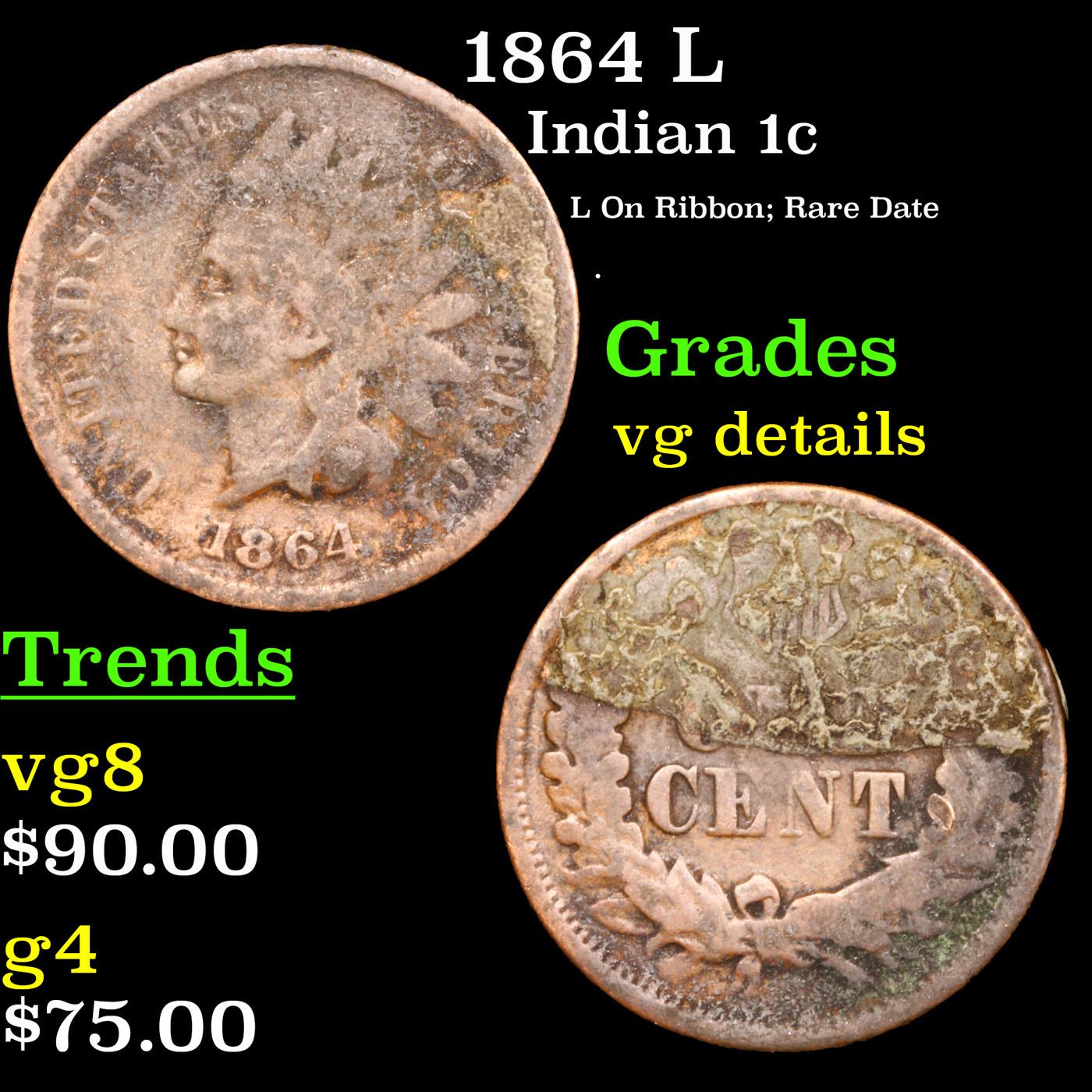 1864 L Indian Cent 1c Grades vg details.