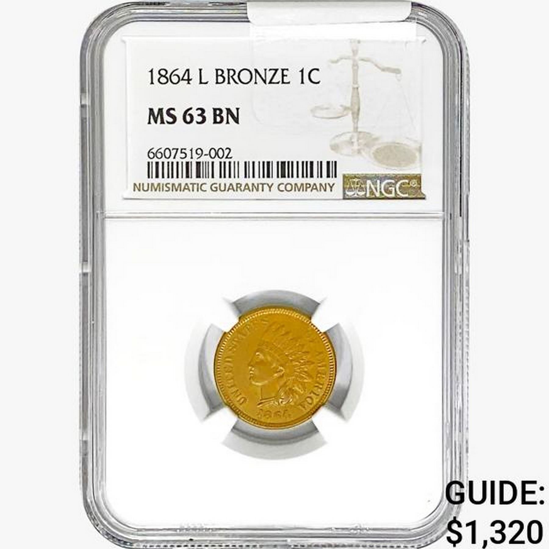 1864 L Indian Head Cent NGC MS63 BN Bronze