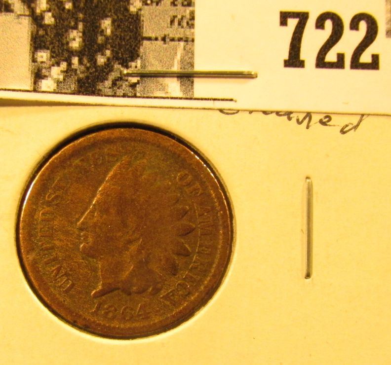 1864 "L" U.S. Indian Head Cent, cleaned, Good.