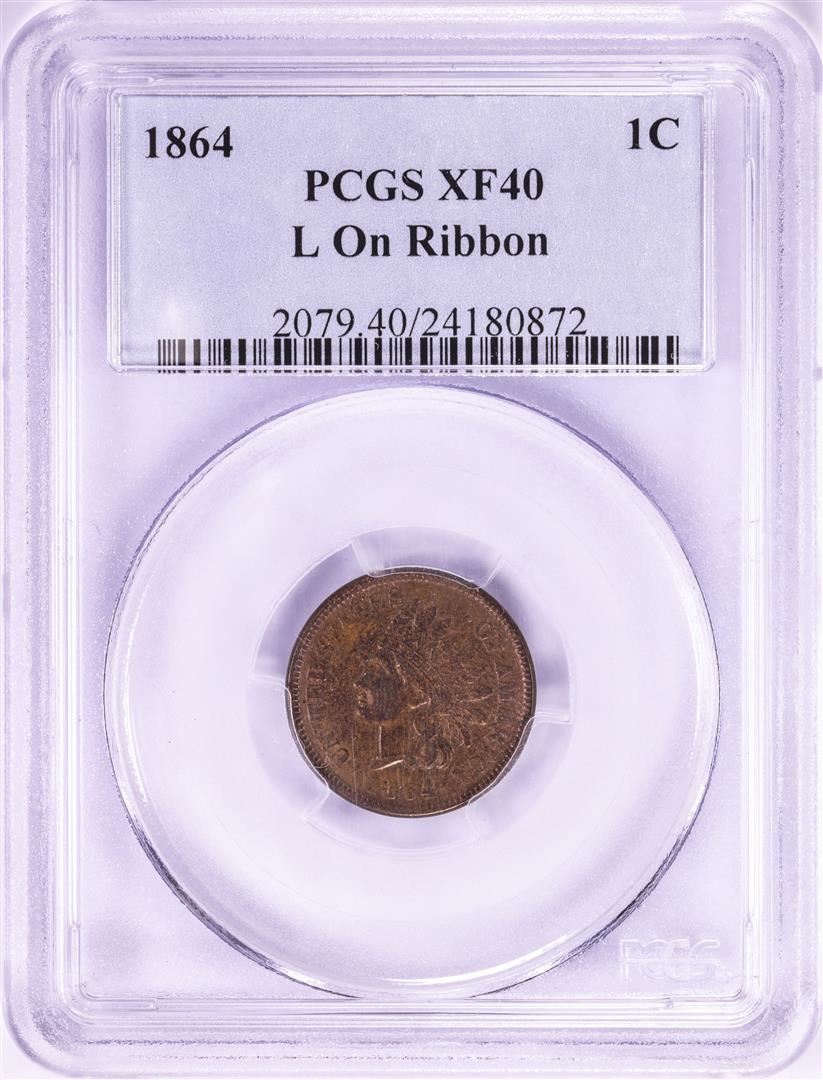 One 1864 L on Ribbon Indian Head Cent Coin PCGS XF40. PCGS Graded.