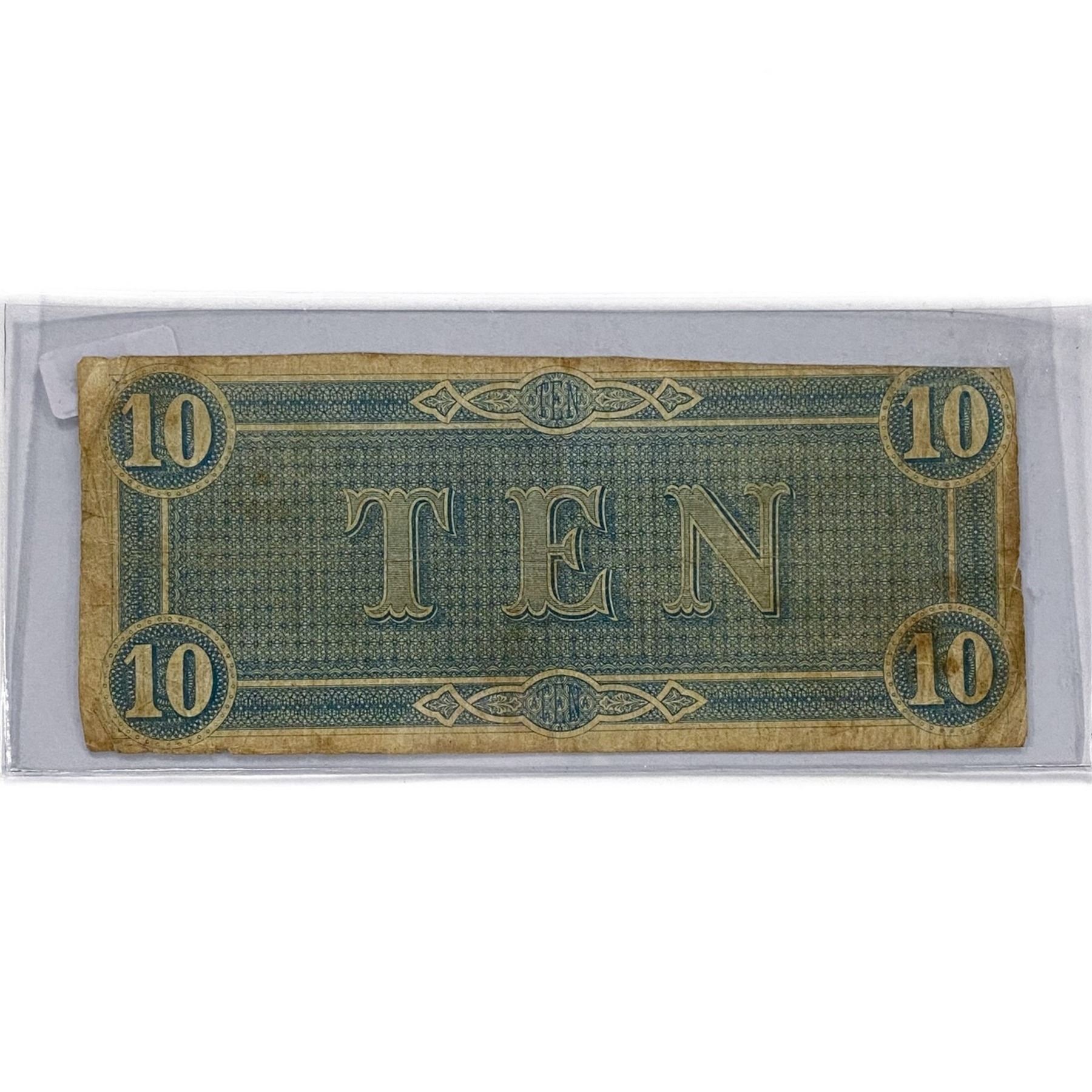 1864 LG $10 Confederate Note