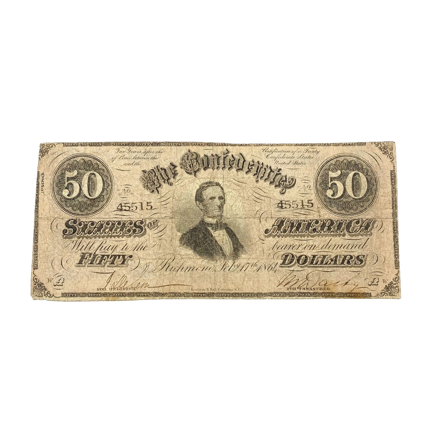 1864 LG $50 Confederate States of America Note