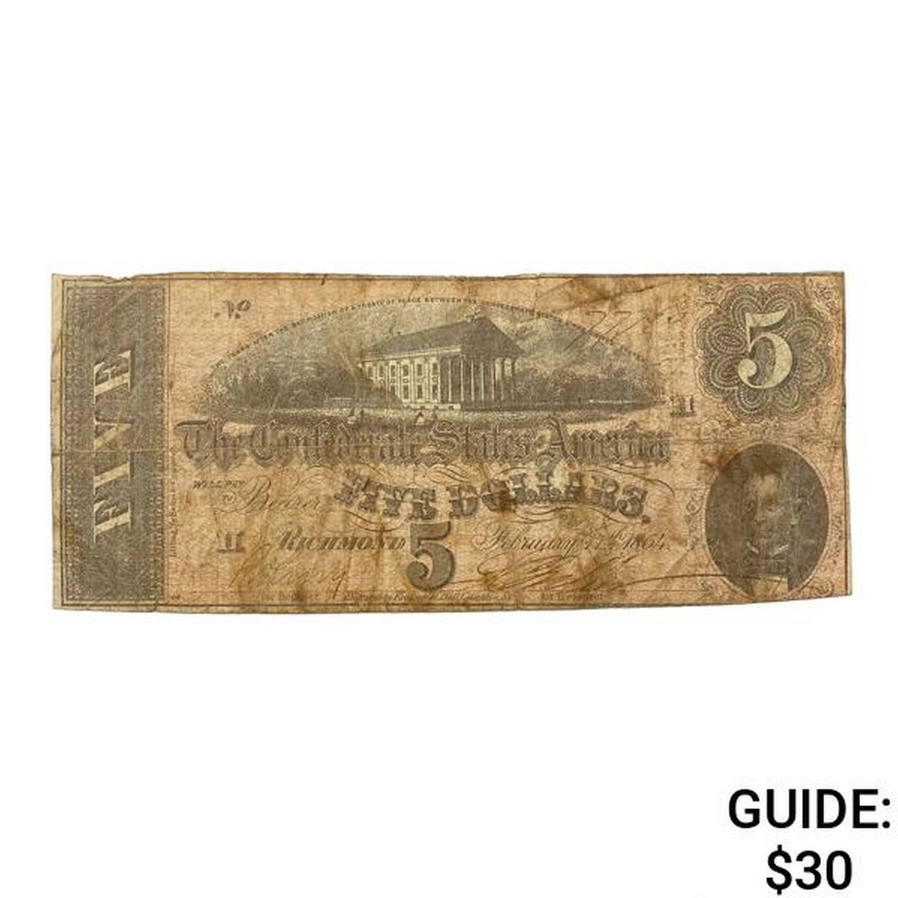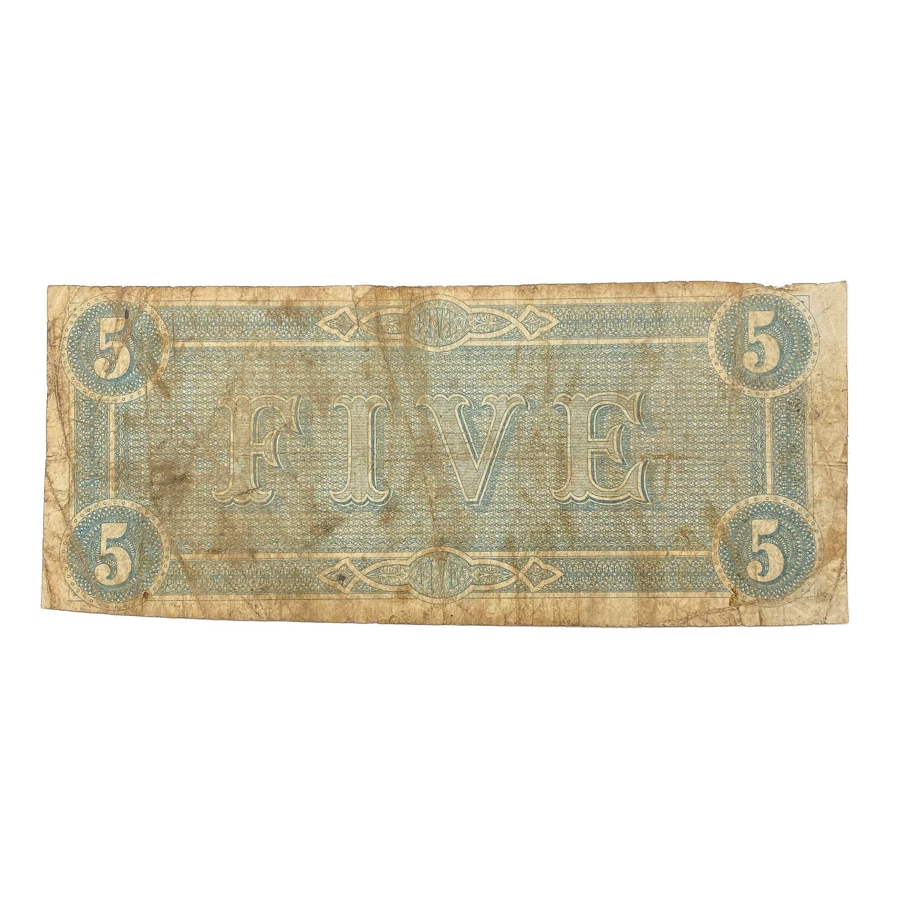1864 LG Confederate $5 Legal Tender Note