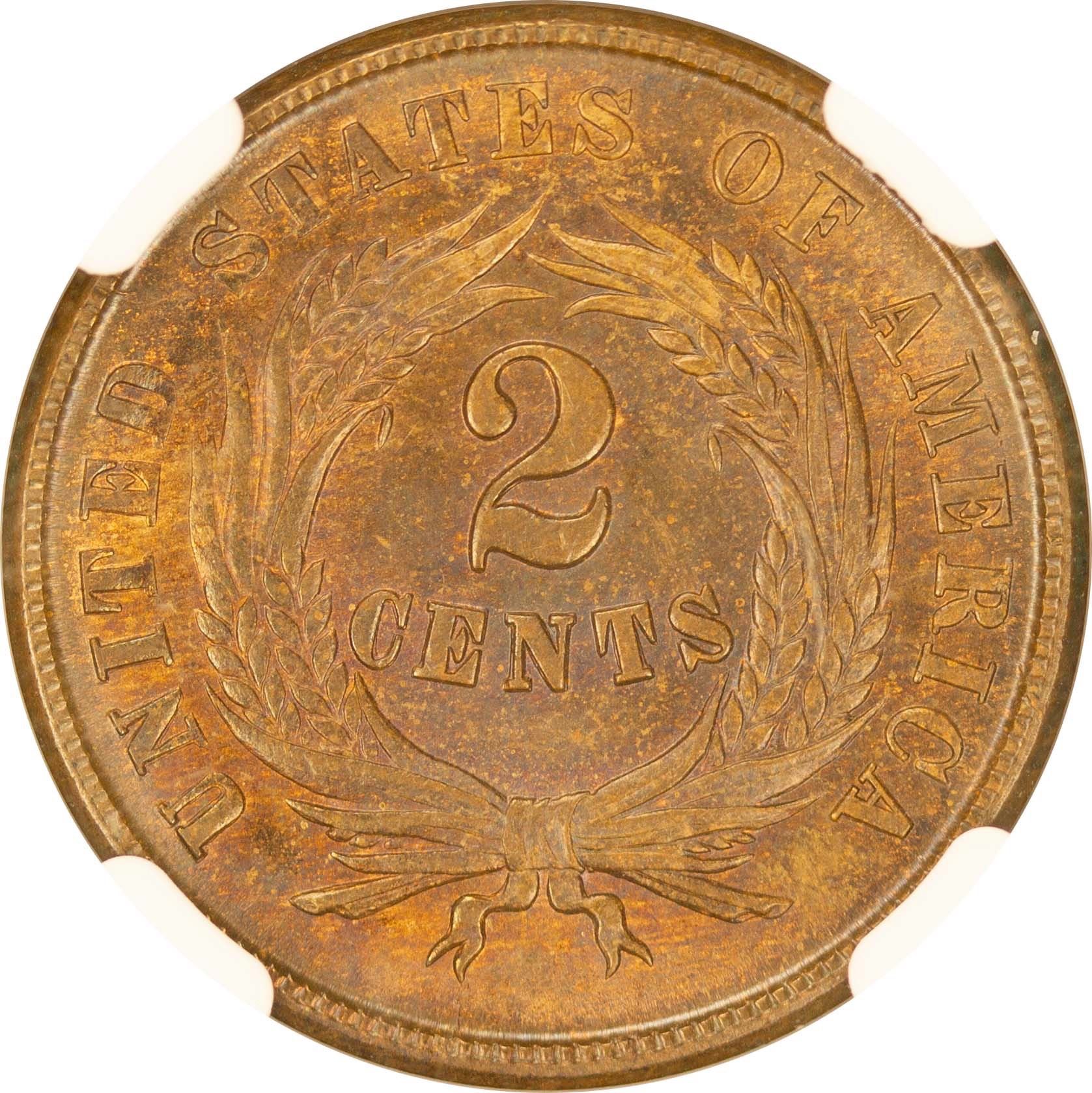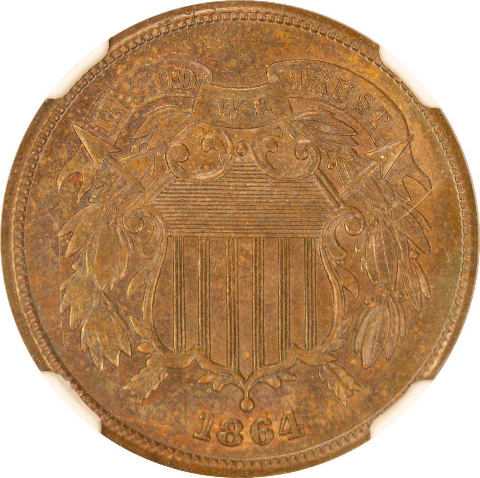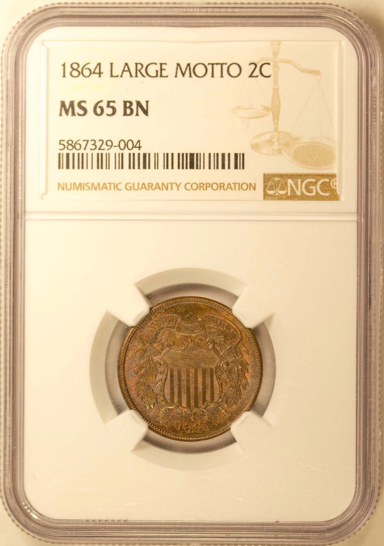1864 Large Motto Two Cent 2c NGC MS-65 BN