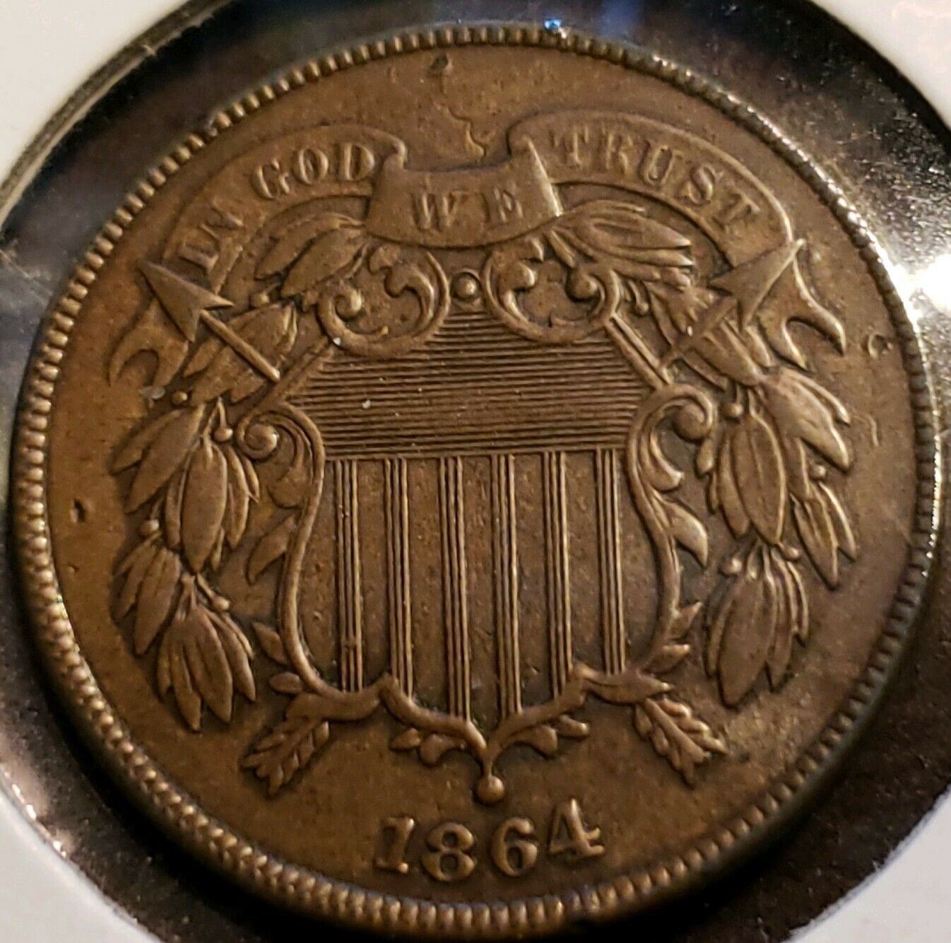 One 1864 Large Motto Two Cent Coin.