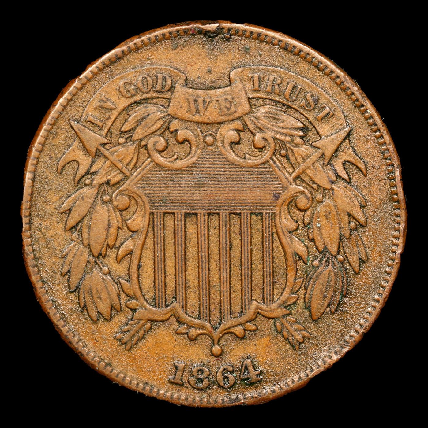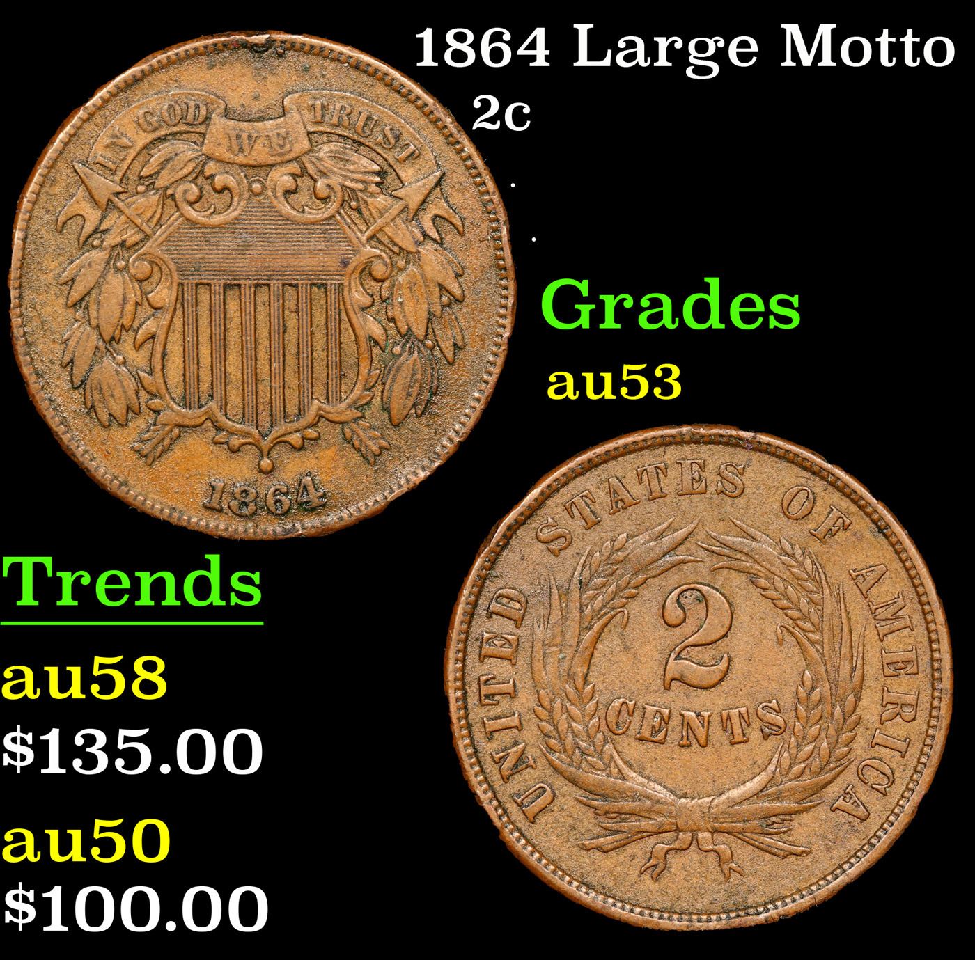 1864 Large Motto Two Cent Piece 2c Grades Select AU.