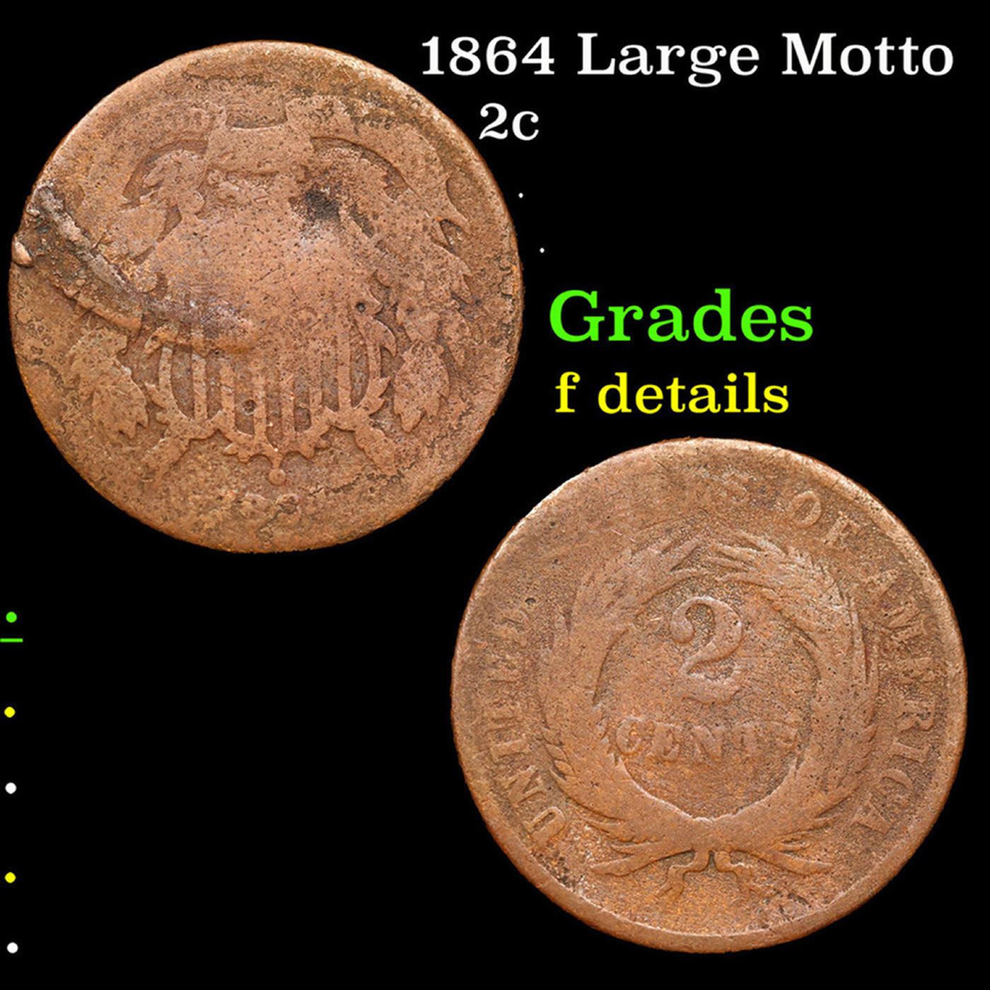 1864 Large Motto Two Cent Piece 2c Grades f details.