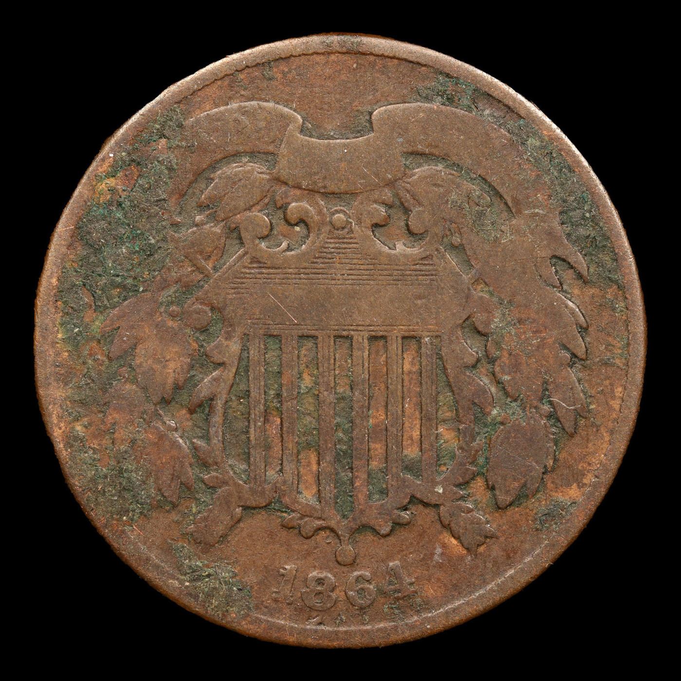 1864 Large Motto Two Cent Piece 2c Grades f+.