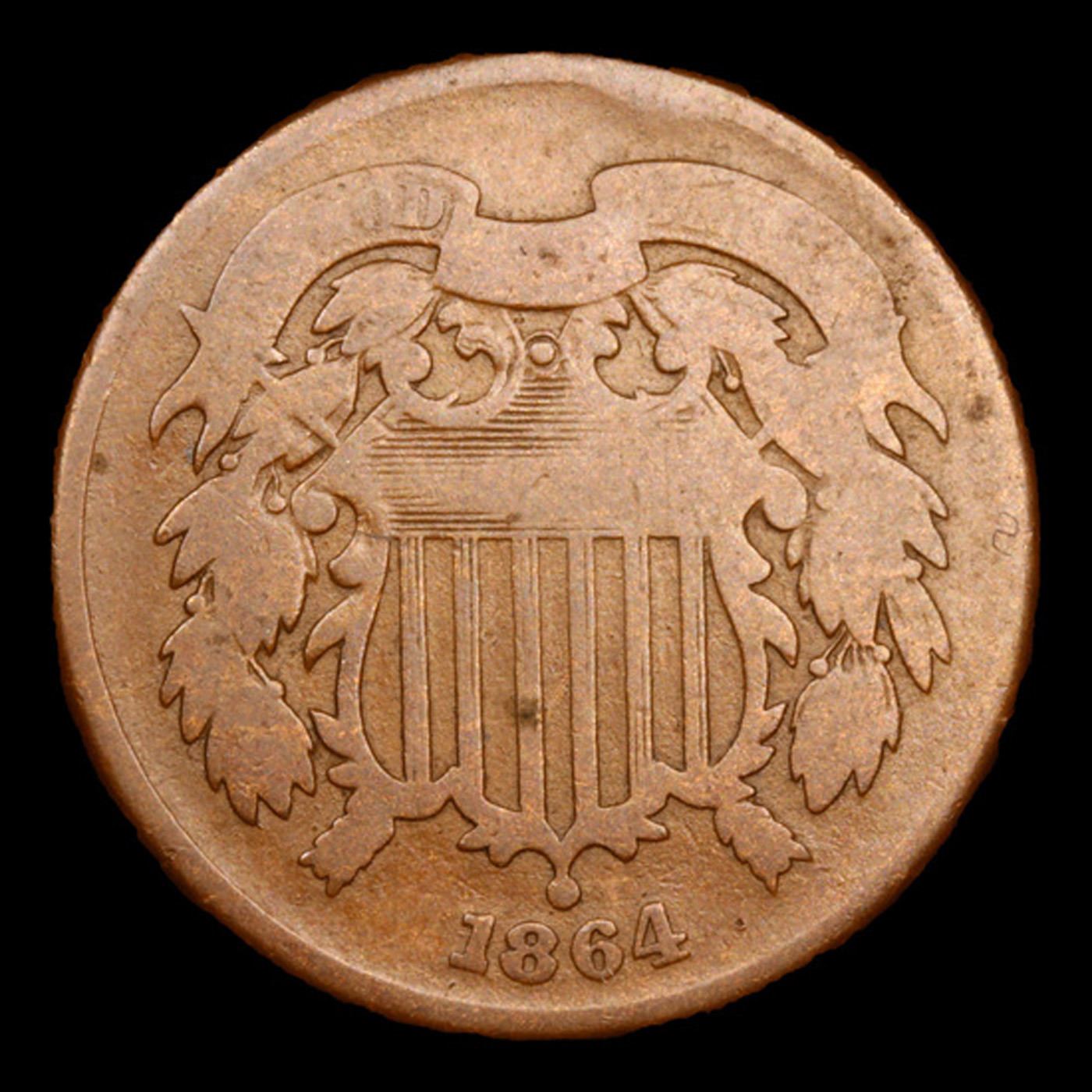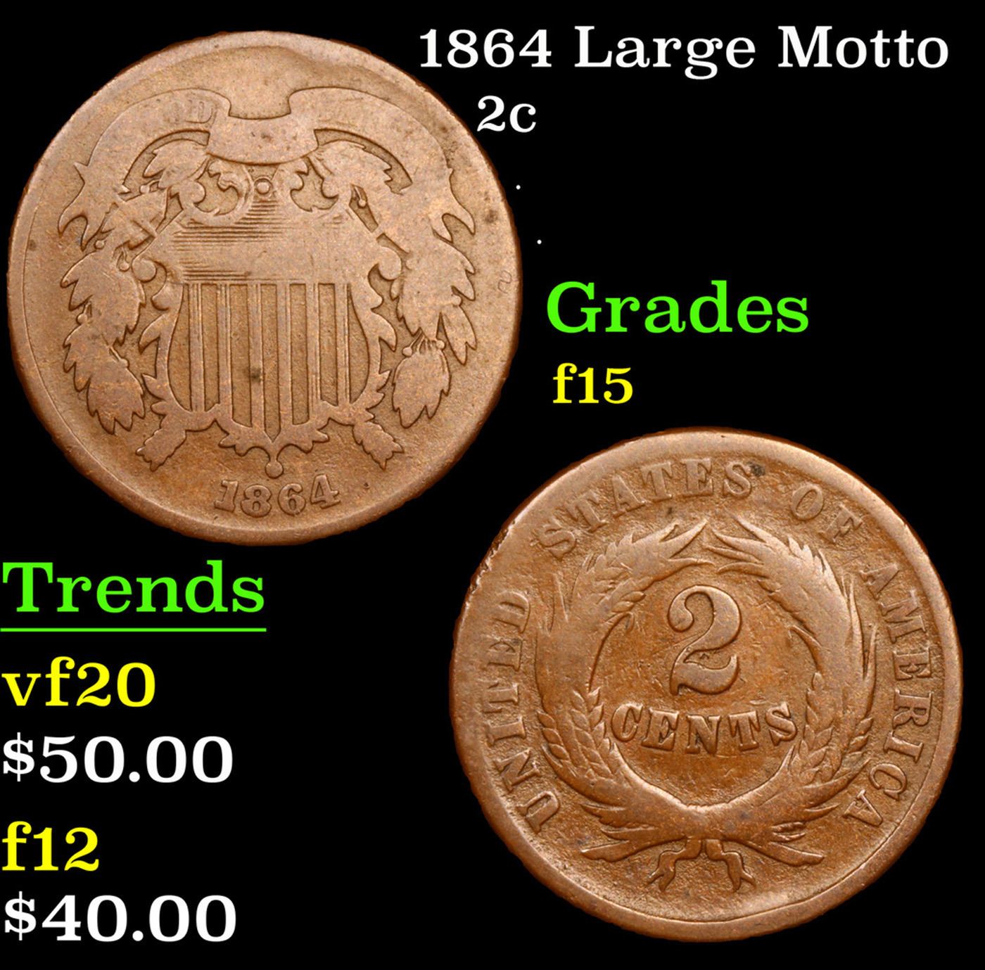 1864 Large Motto Two Cent Piece 2c Grades f+.