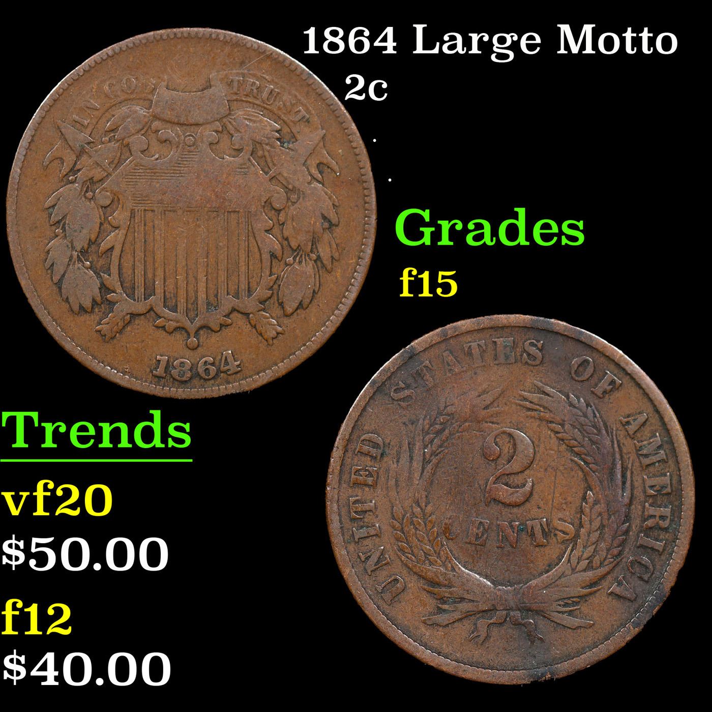 1864 Large Motto Two Cent Piece 2c Grades f+.