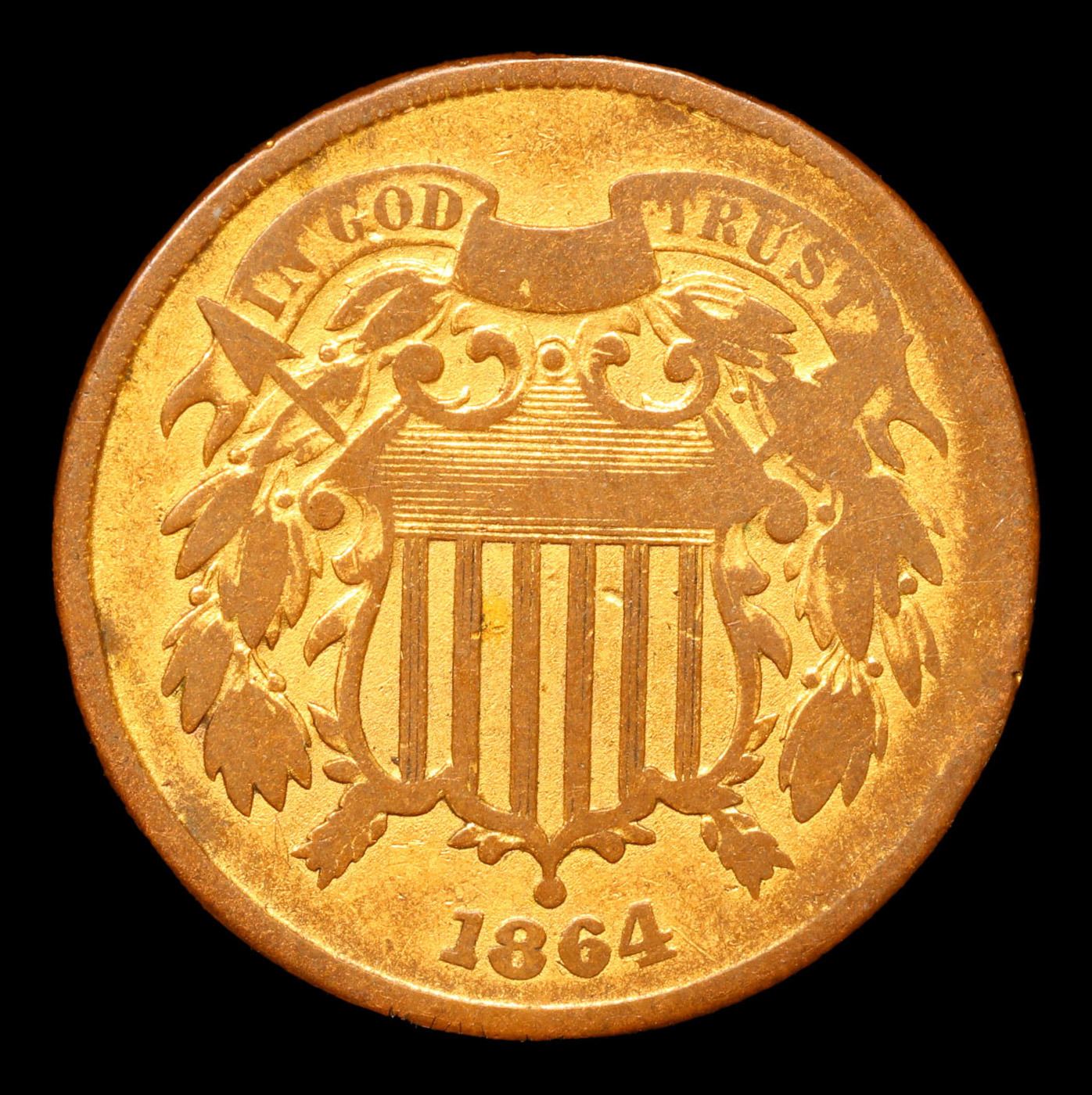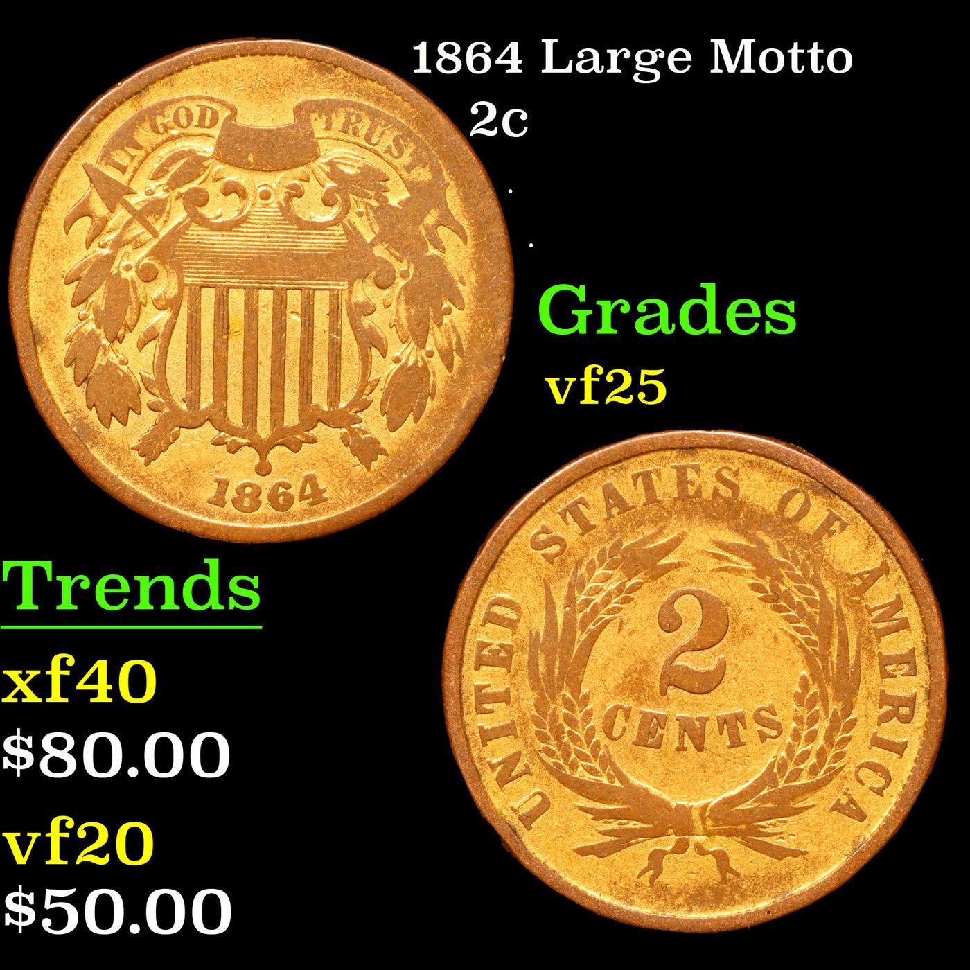 1864 Large Motto Two Cent Piece 2c Grades vf+.