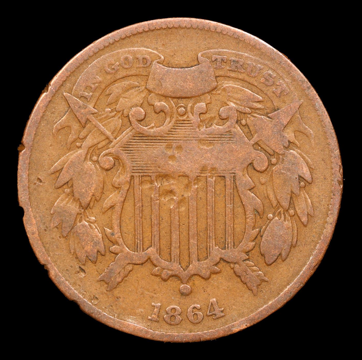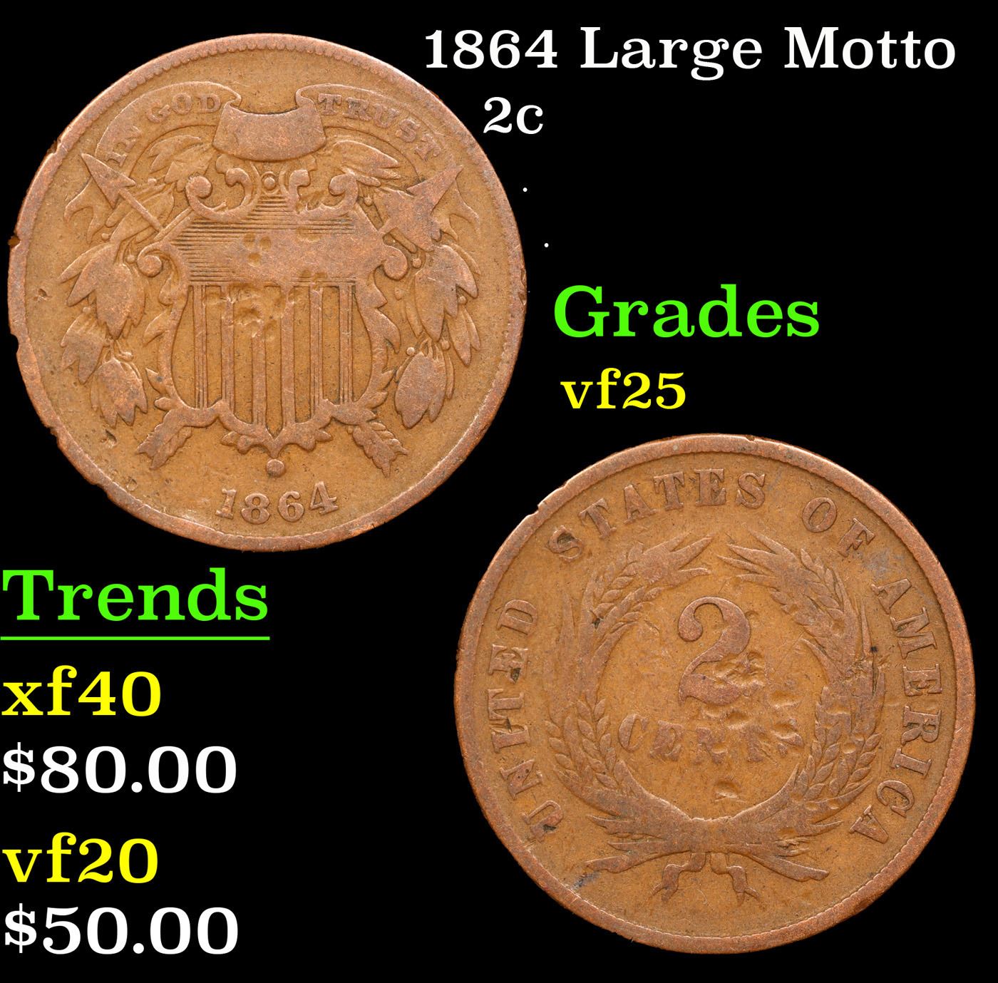 1864 Large Motto Two Cent Piece 2c Grades vf+.